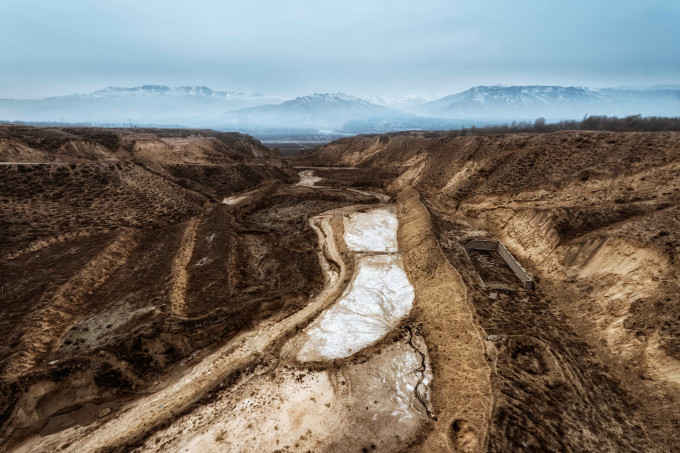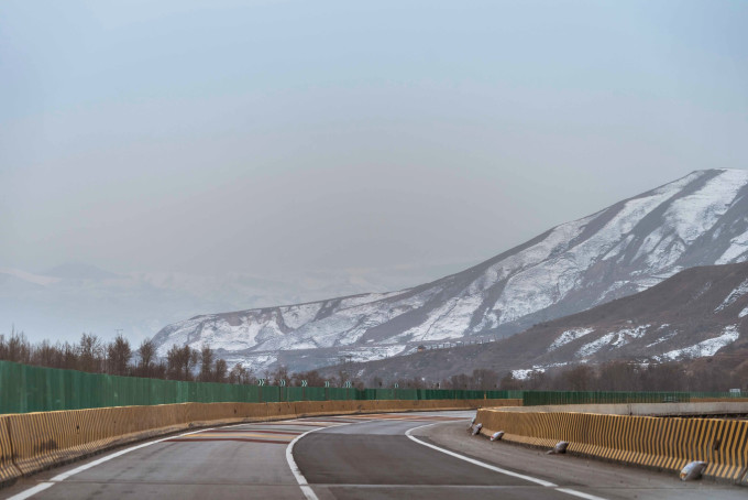 青海甘肃地形都比较相似,黄土少树,远处被冰雪覆盖的山头带来一丝丝冷色。
