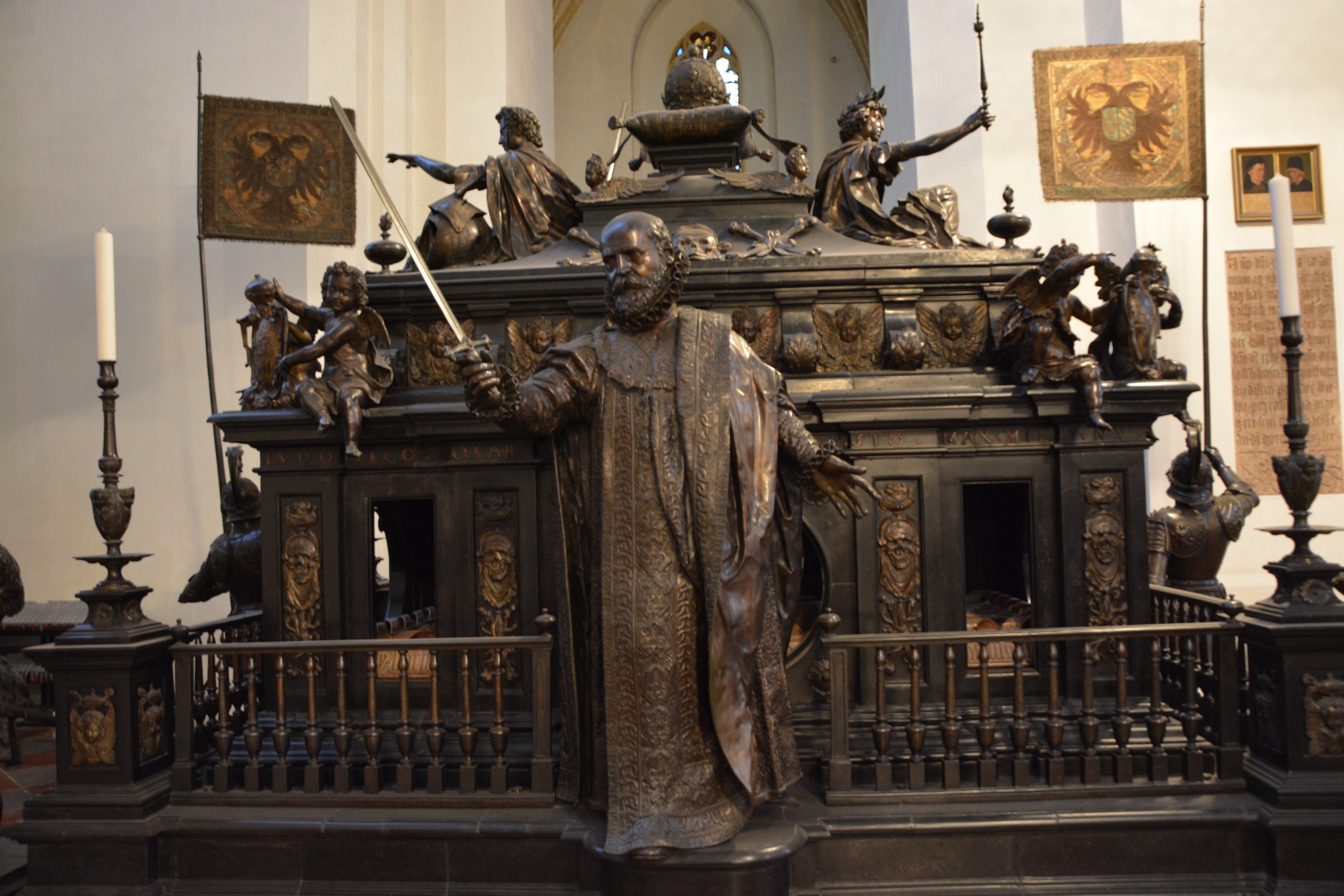 圣母大教堂是天主教慕尼黑-弗赖辛总教区的主教座堂,是一栋哥特晚期风格的高大红砖建筑,由于教堂外部不像其他哥特式建筑那样充满了各种各样的装饰,从而显得简朴而肃穆。这座大教堂建筑时间超过二十年,建成时,文艺复兴运动已经在欧洲大地如火如荼地开展,所以教堂的尖顶就自然而然变成了当时时髦的大圆顶。文艺复兴嘛,复兴的就是罗马时期的艺术形式,那个时候的建筑就是流行各种圆形穹顶,跟“我欲日天”的哥特风比起来,就是显得成熟又稳重。