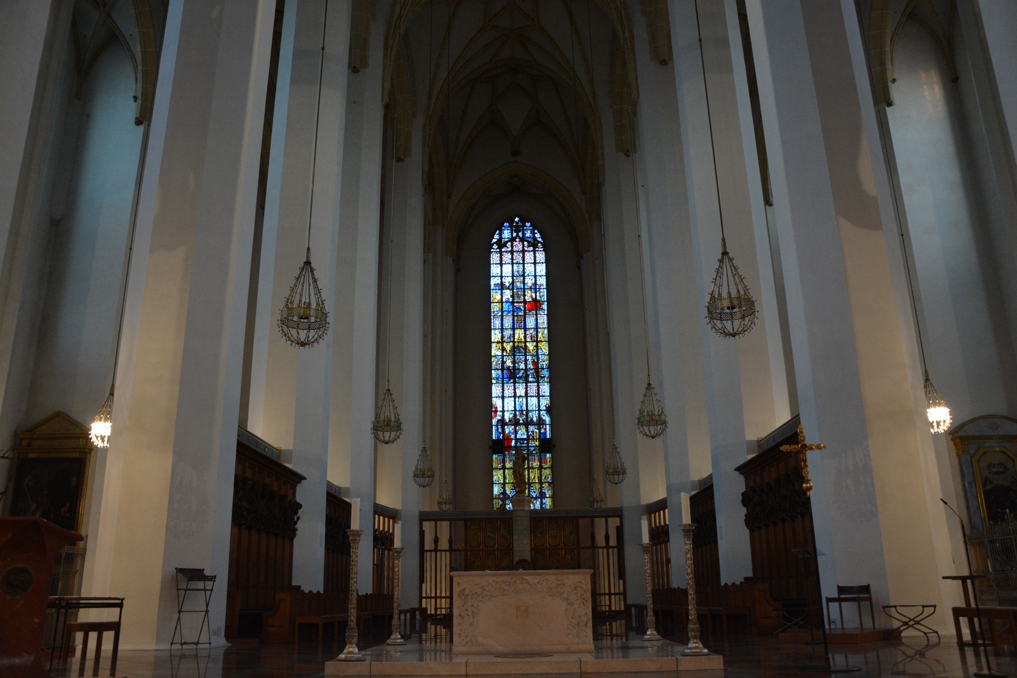 圣母大教堂内有夏加尔创作的大量彩画玻璃,这是用肉眼可见的方法向信徒讲述宗教故事,灌输宗教理念。从前的人民群众大部分是文盲,大字不识两个,其实最好的传教方式就是用各种直观的感触影响他们,比如这种教堂里的玻璃彩画,色彩鲜艳,形式生动,我大学本科双学士毕业都愿意多看两眼,更何况那些平时找不到任何乐子的贫苦百姓。 其实,去看看中国境内那些历经数百年才得以完工的佛教石窟和壁画,就能理解这种直观感受的威力,后来的信徒们散尽家财也要开凿一尊佛像,不能说这不是受到了前人已经造好的偶像的影响, 那么多佛陀矗立在石壁之上,宛若西天佛国一般,人观之便有升华的感觉。