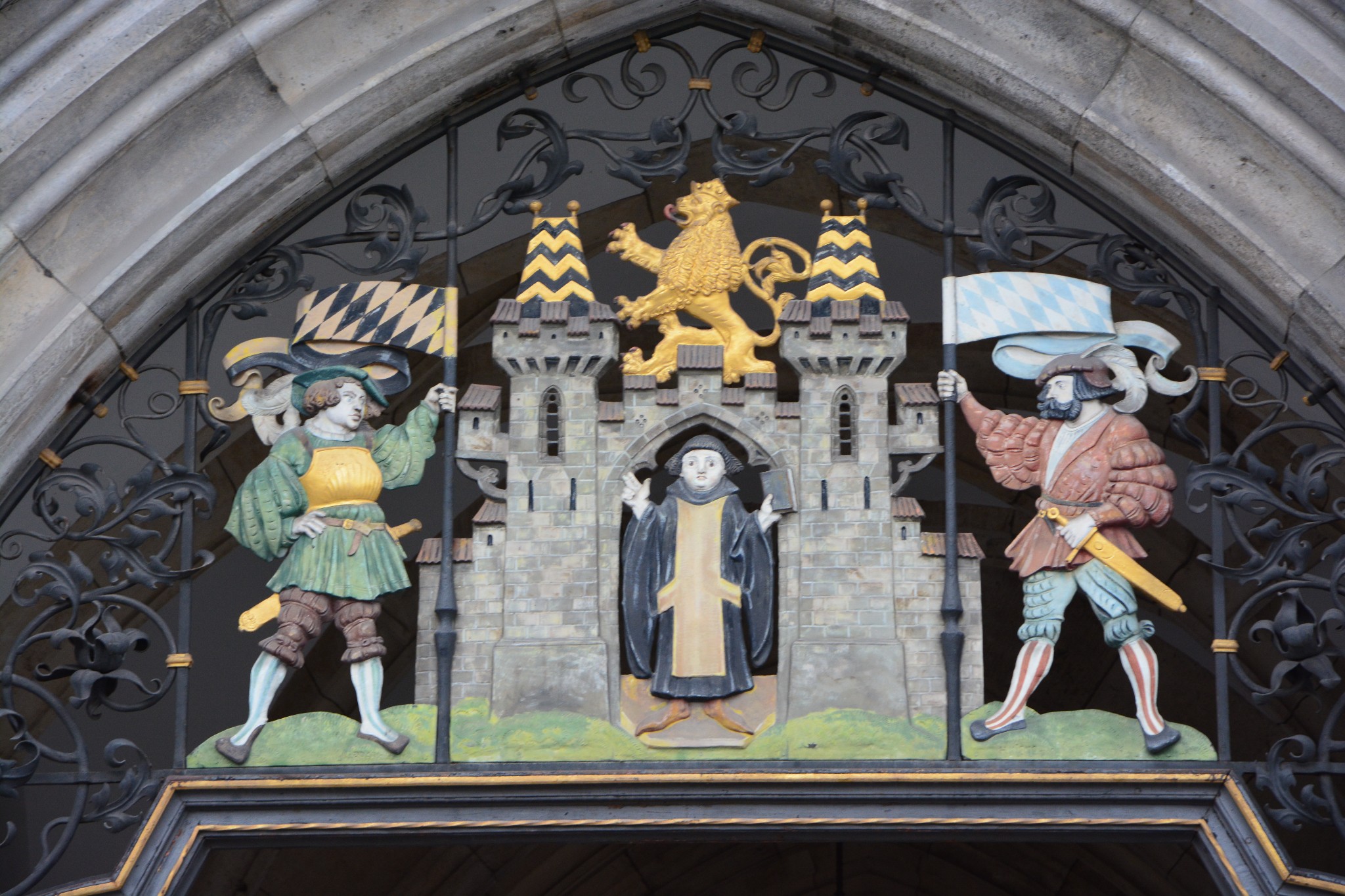 新市政厅的塔楼上有德国最大的木偶报时钟,每天11点和12点,还有3月至10月的17点和21点,都会演出真人大小的木偶历史剧,内容为威廉五世的婚礼现场。相传1516年鼠疫袭击慕尼黑,全市死亡几千人,余者纷纷逃离城市,整个慕尼黑变成一座死城,直到52年后,威廉五世为了恢复城市的人气,举办了盛大的婚礼游行,吸引人们前来观看,就这样城市才慢慢恢复了疫灾前的生气。