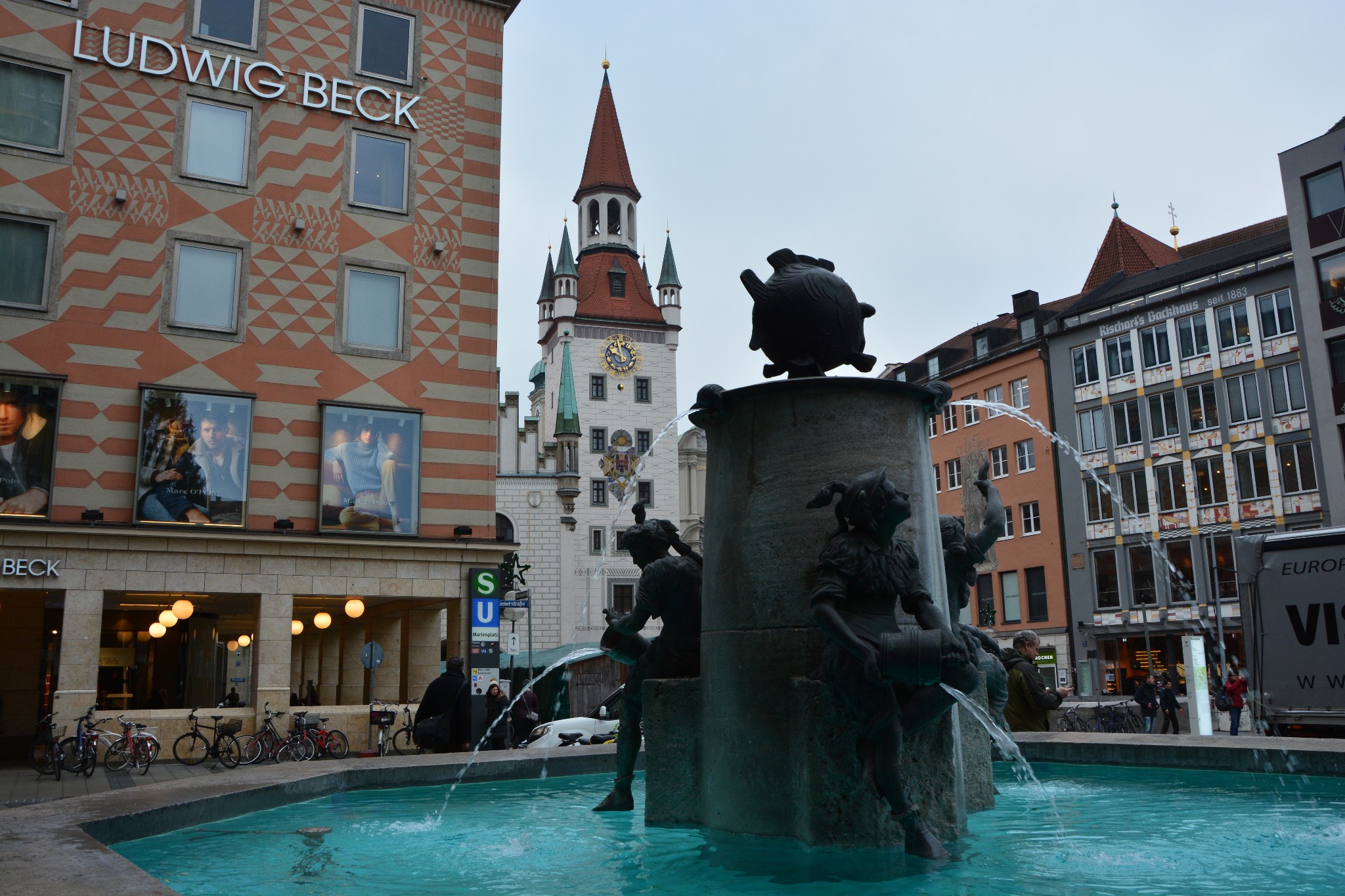 不过在正式体会慕尼黑三宝之前,还是要先去玛利亚广场完成打卡活动,这是身份一名有追求的游记写手的责任和悲剧,明明知道可能没什么好看的,但还是得千山万水赶过去留下点证据。不过玛利亚广场比欧洲那些差不多一个模子里倒出来的城市广场还是更能引起我的兴趣,毕竟拜仁慕尼黑每一次夺冠后的庆祝活动上都是在这座著名的广场上举行,而以拜仁在德国国内所向无敌的尿性来说,基本上每年都能在电视或网络上看到玛利亚广场的身姿,哇奥,这次身临其境,竟然有种熟识已久的感觉呢。