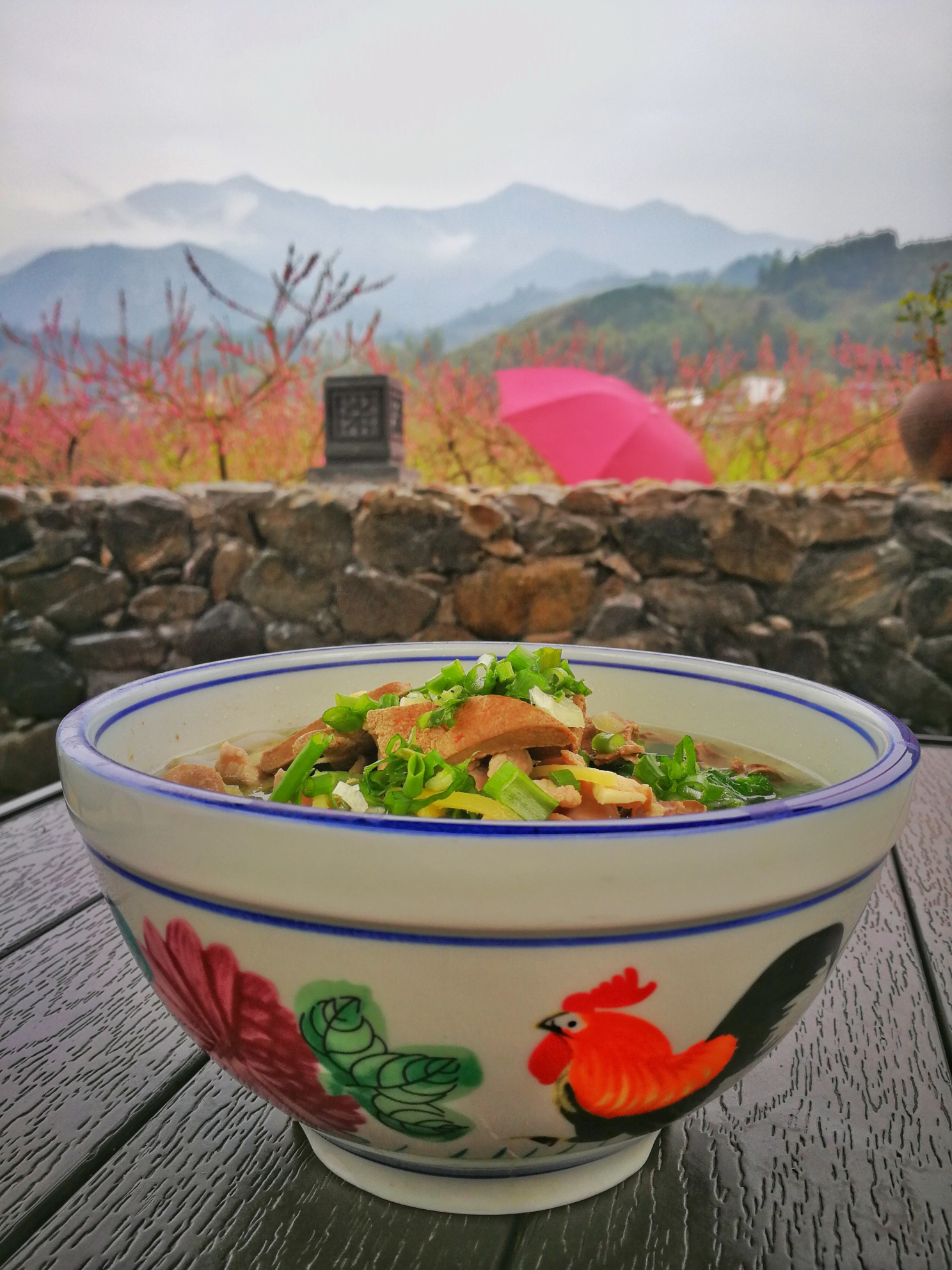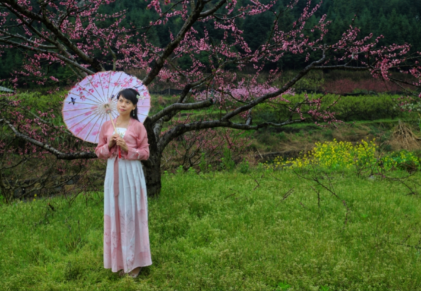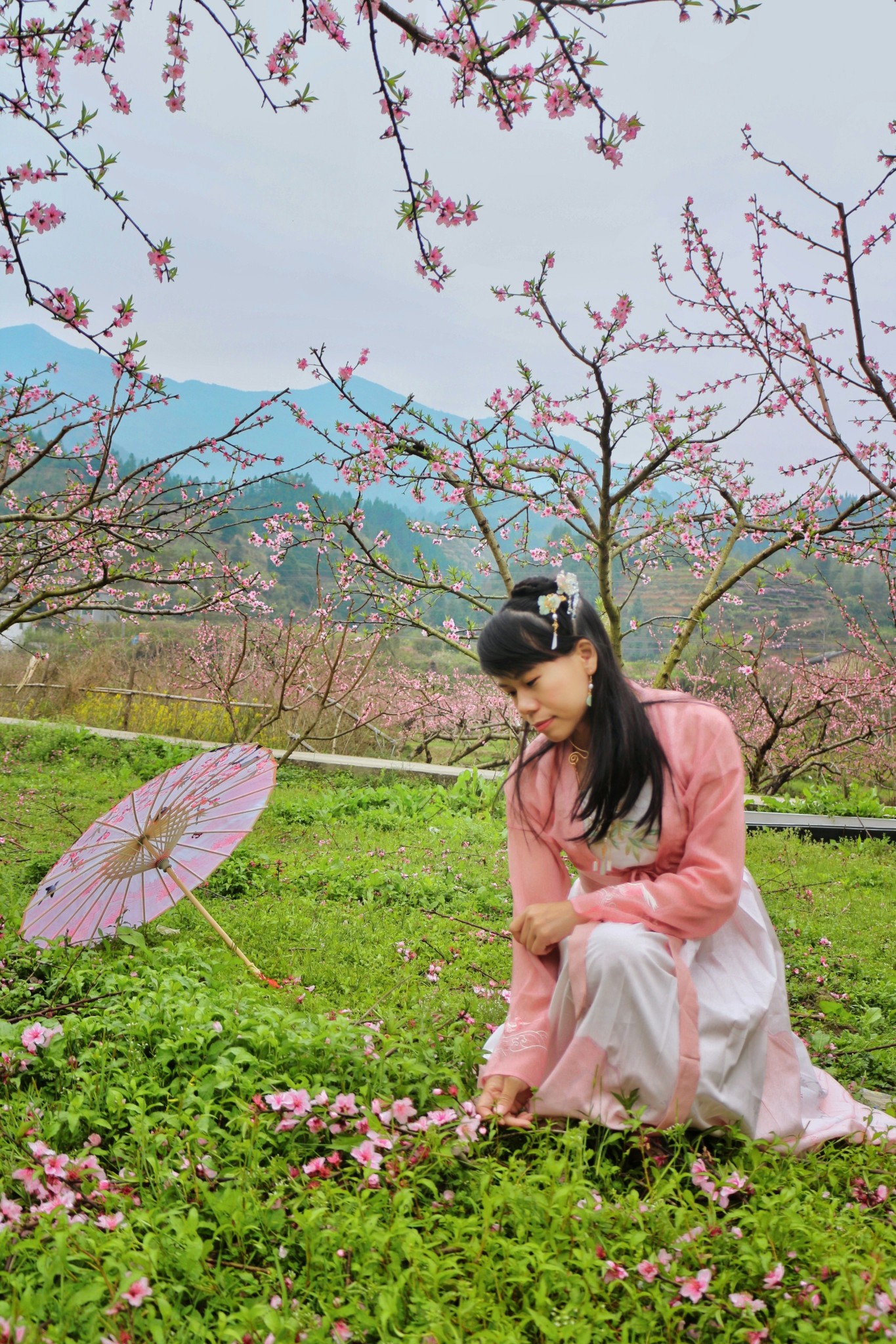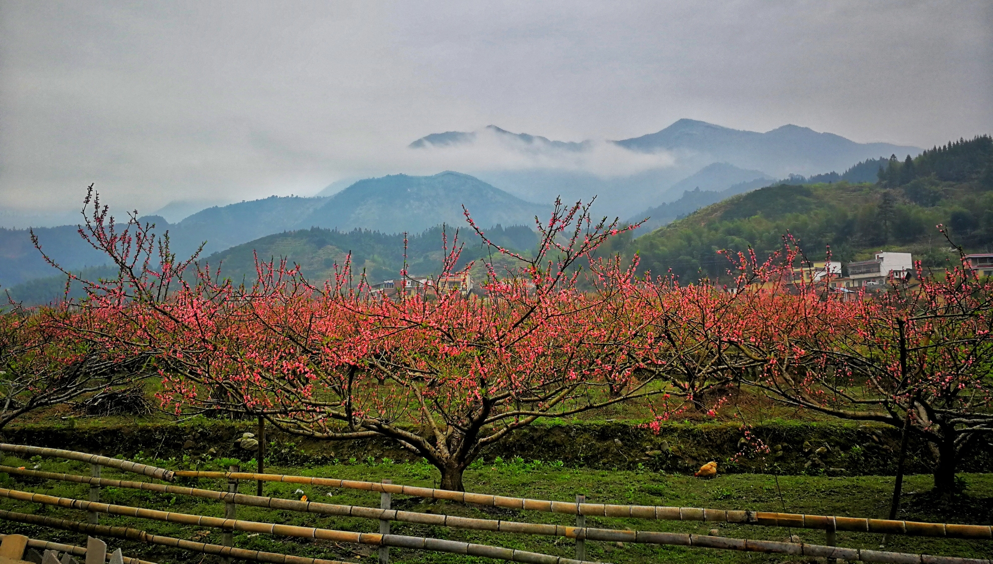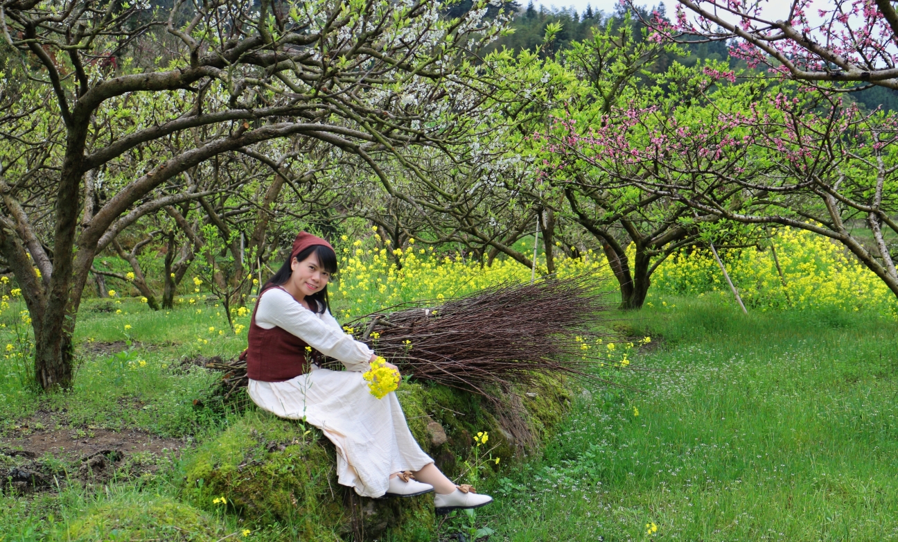 两天的山村之旅,单纯游走在大廊也感觉远远不够。两天旅程,都是烟雨朦胧。大部分的花已谢,但却有意想不到的山间野趣。山雾缭绕,纯粹坐着发呆也是人间乐事。小雨淅沥,花草冲刷过后,越发翠绿。身穿汉服,恍惚中像是穿越了。回达哥民宿,在村庄路过几棵桃树,村民已修整枝叶,我们随意拾起地上的桃枝,作为离开九峰的礼物,另有一番意义!