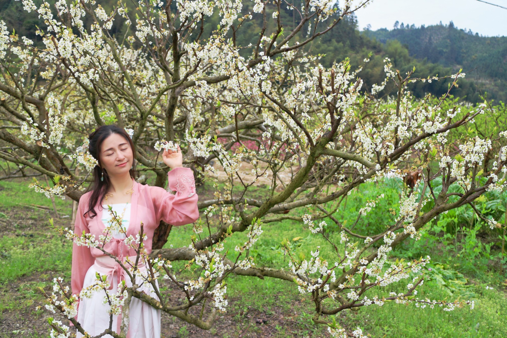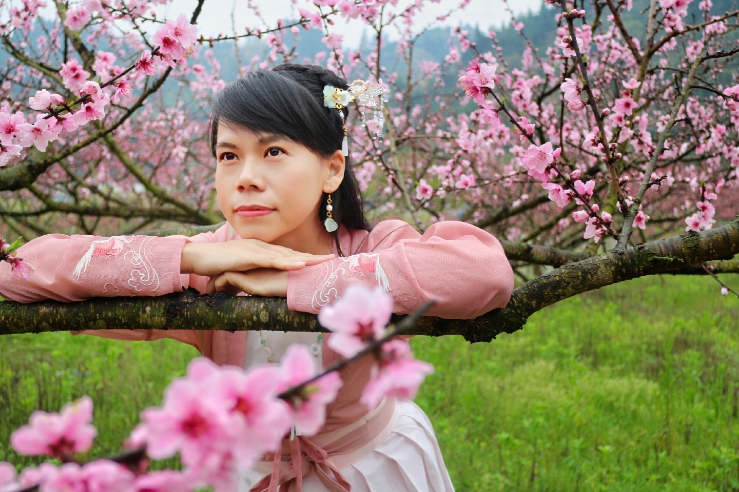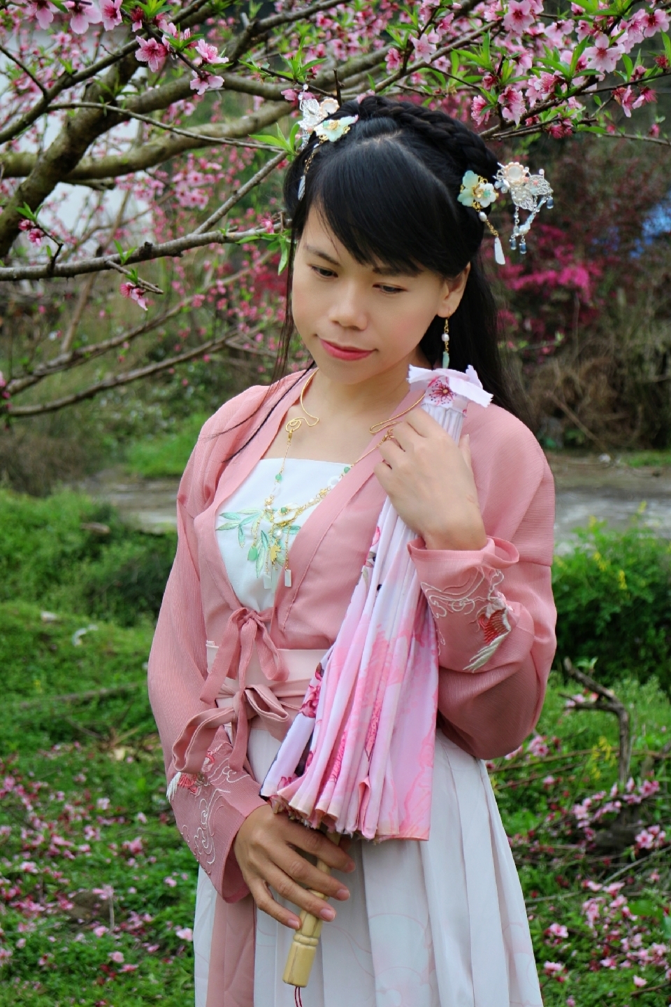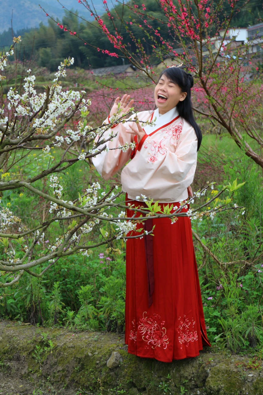 两天的山村之旅,单纯游走在大廊也感觉远远不够。两天旅程,都是烟雨朦胧。大部分的花已谢,但却有意想不到的山间野趣。山雾缭绕,纯粹坐着发呆也是人间乐事。小雨淅沥,花草冲刷过后,越发翠绿。身穿汉服,恍惚中像是穿越了。回达哥民宿,在村庄路过几棵桃树,村民已修整枝叶,我们随意拾起地上的桃枝,作为离开九峰的礼物,另有一番意义!