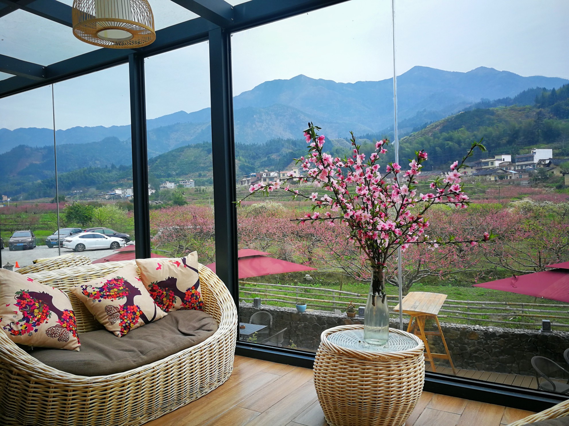旧地重游,总会想着体验更多不一样的东西。我依然是全能的打点王。在微博地毯式搜索民宿,意外发现了达哥的桃缘山居。民宿占地不大,房间的数量也不多,但是是我心中的理想型,在一方土地,推开窗,花海嫣然。别致的小院,文艺的玻璃房。唯一缺点就是一楼的隔音不是很好,但意外发现当天住的房间配有独立的更衣室,梳妆台,并配有全身镜,对于我们的汉服之行提供了极大的便利。