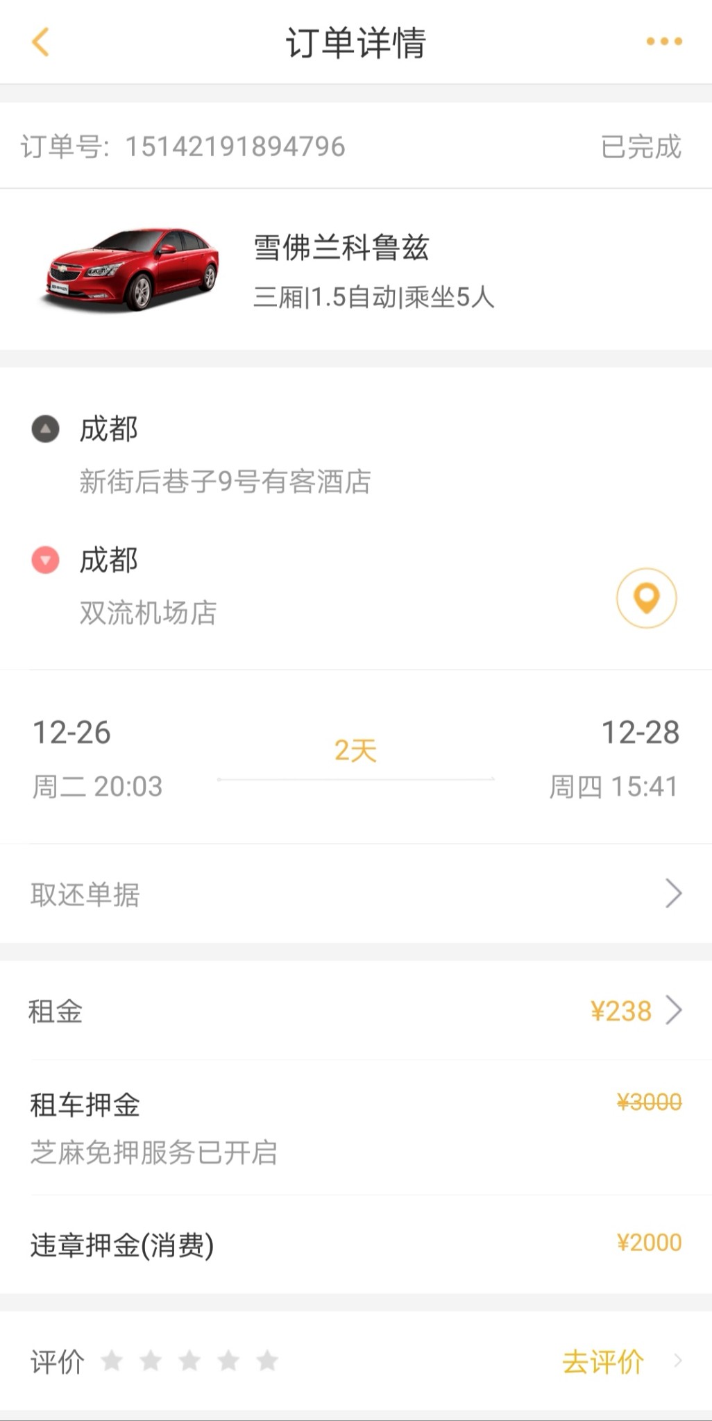 神州租车整体的感觉还算不错,并没有遇到网上说的那种强行扣款之类不愉快的事情。一开始租的是辆别克朗逸,在成都双流机场拿车。结果期间发现有天车辆限行,便联系神州租车做车辆更换。换车时验车小哥建议我不如付费以后从新租一辆,这样可以享受折扣,而且用芝麻信用可以免押,SO...我便根据小哥的指导,重新租了一辆科鲁兹。这里给帅气的小哥一个大大赞,爱你哟,笔芯,啾啾啾~