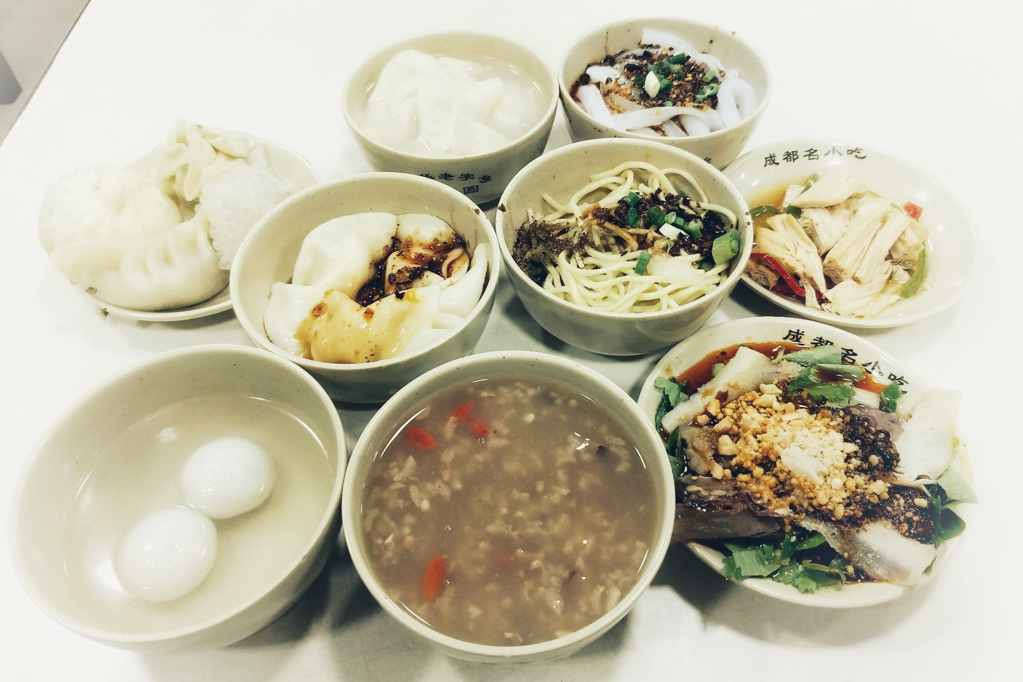 成都的著名传统小吃,位于总府路的百年老字号。可以点套餐,每种小吃都试一试尝一尝。套餐包含:龙抄手 , 糍粑 , 珍珠圆子 , 钟水饺 , 叶儿粑 , 赖汤圆 , 烧卖 , 蒸饺 , 担担面 ,八宝粥。套餐应该都是提前做好的,味道只能算平实,并无惊艳的味道和口感。但既然来到成都了,总是要尝一下的嘛。