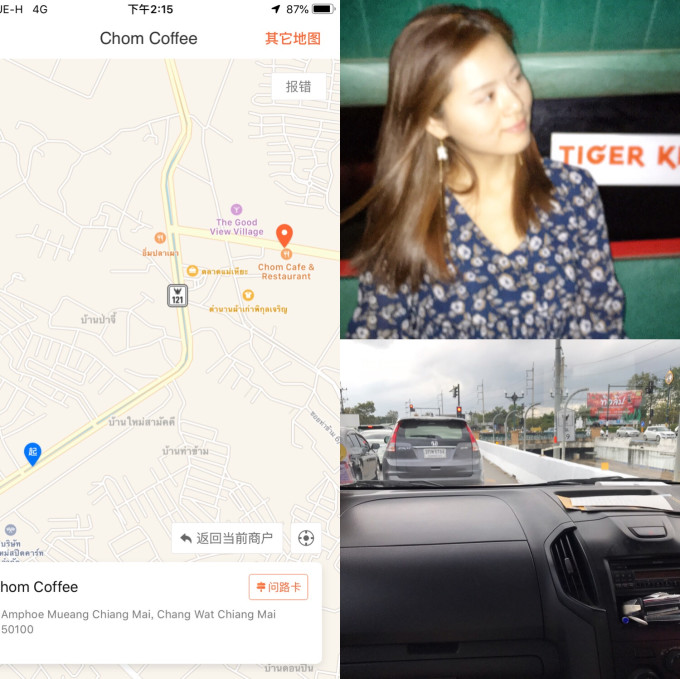 我们包了一辆双条车从诗丽吉植物园到chom餐厅,司机走到餐厅周围,不知道chom具体在哪里了,把车停在路边问我怎么走,我把下图导航指给他看,他表情还是有点疑惑,双手比划着说了一堆泰语,可是我竟然听懂了