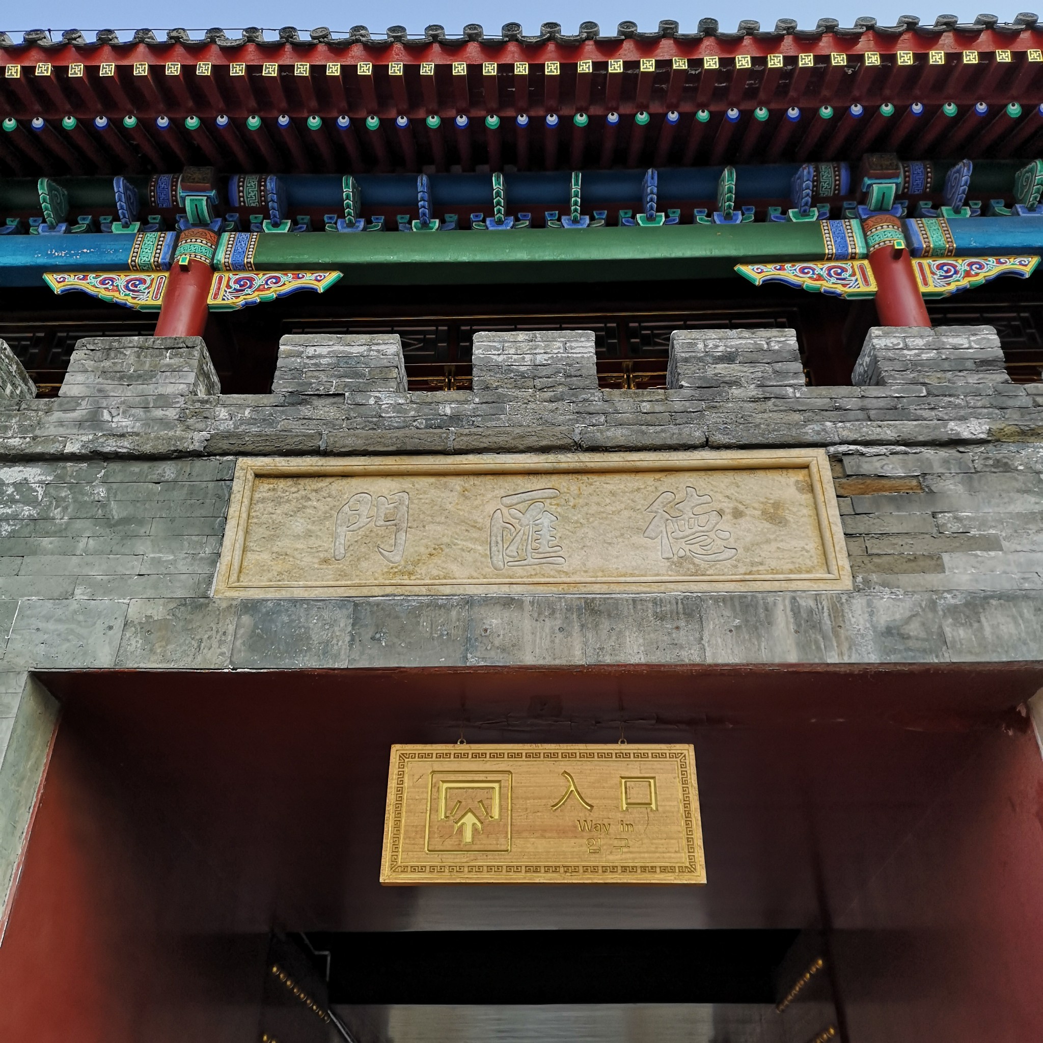 德汇门,建于清乾隆十九年,规制与避暑山庄的正门(丽正门)完全相同,只是门前没有照壁、石狮和下马碑。