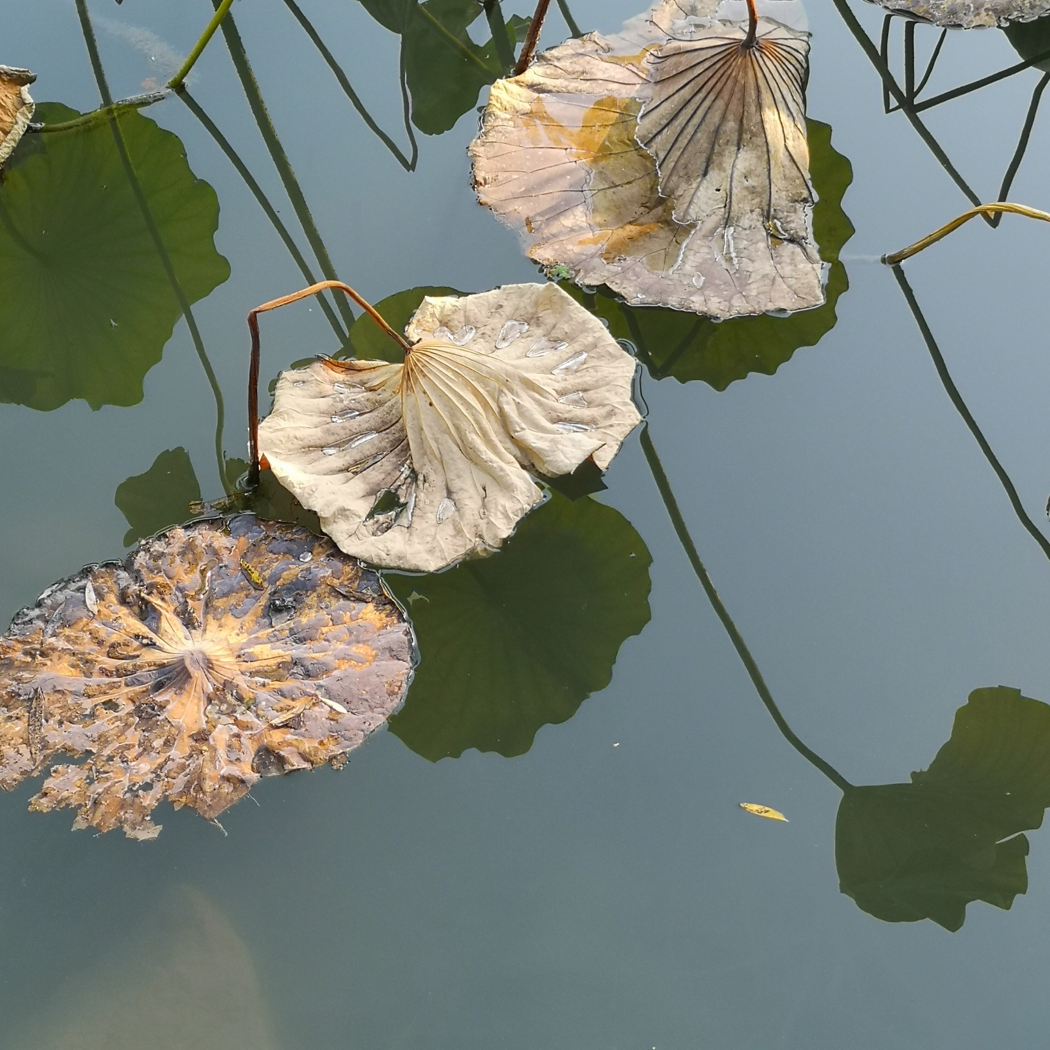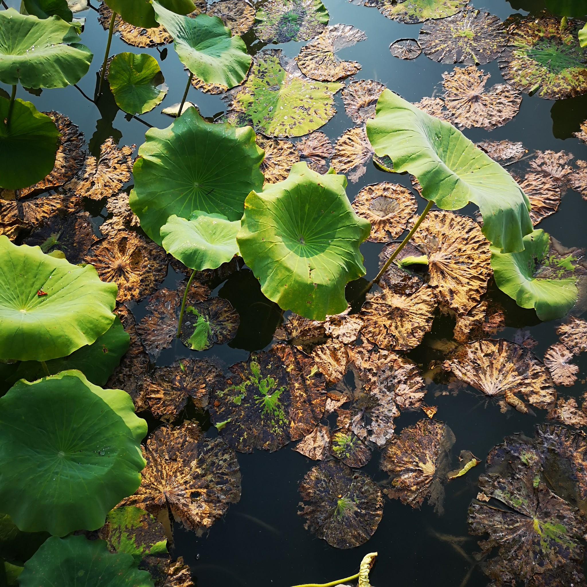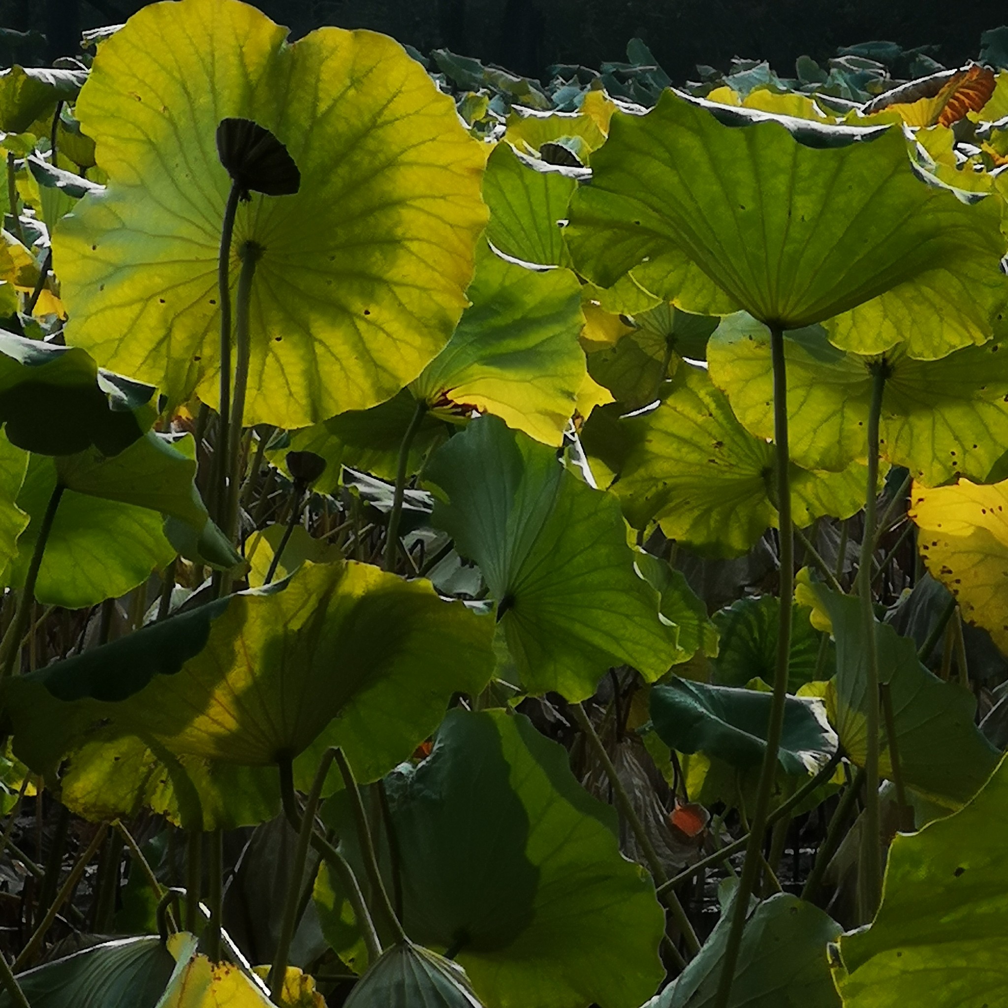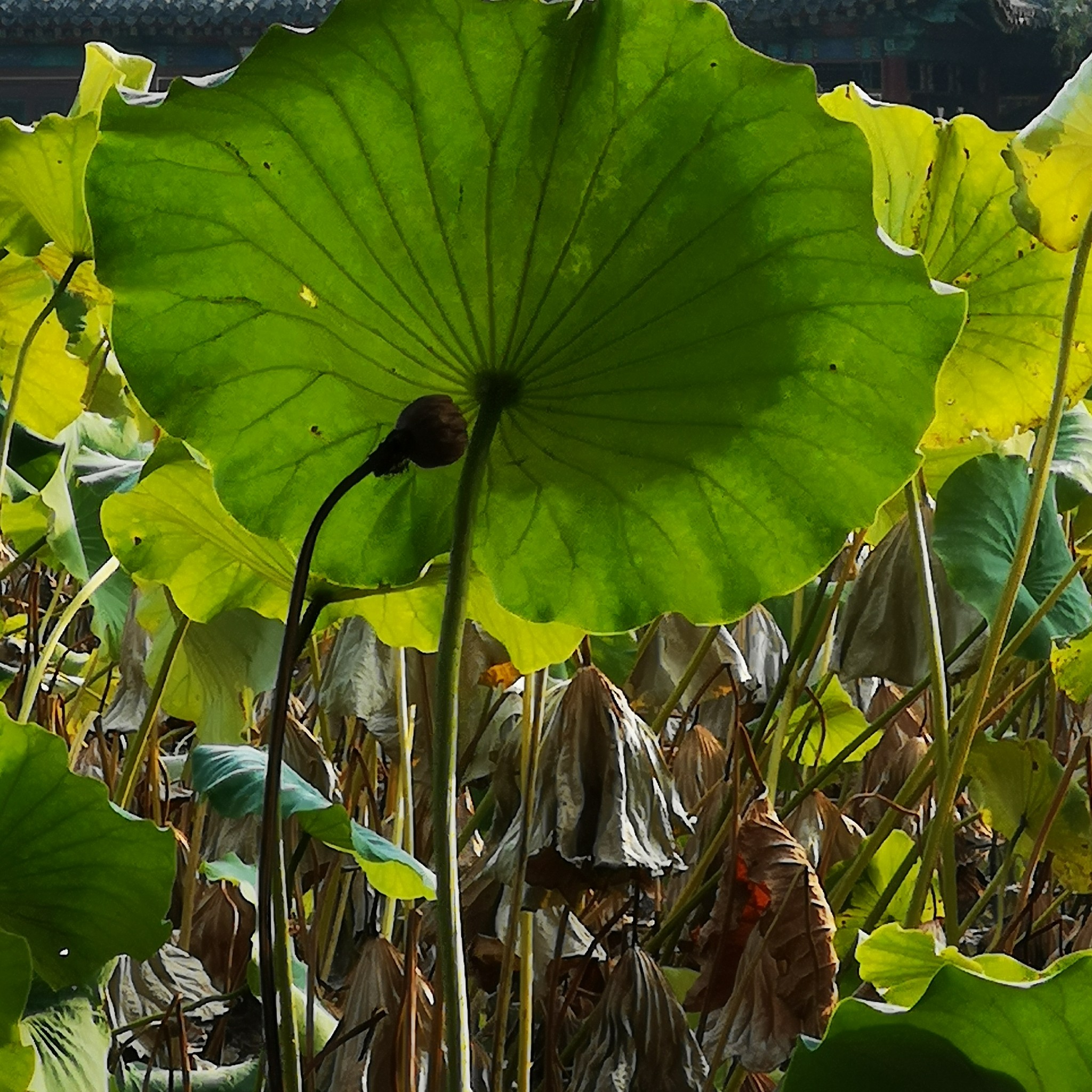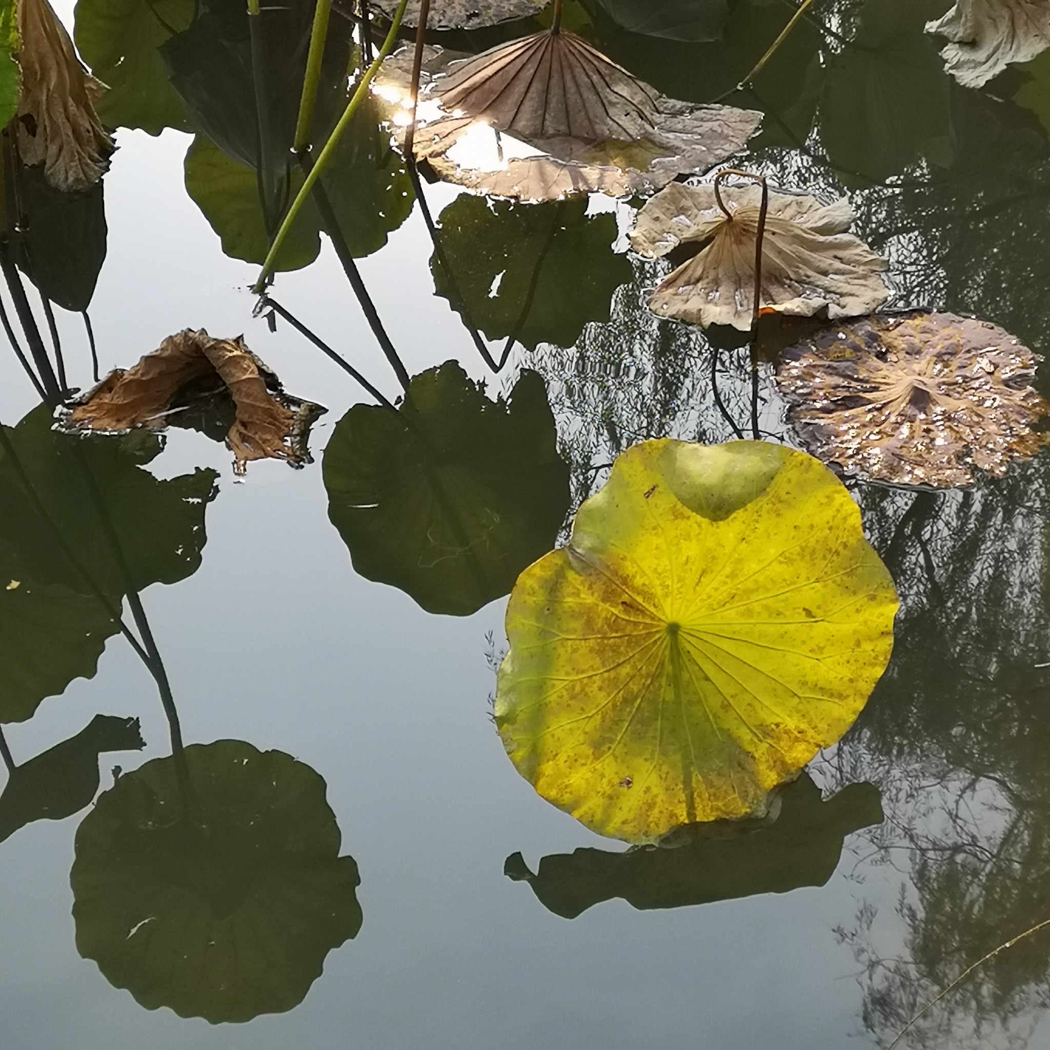 现在已过中秋,荷塘里,芳华已谢,只有接天莲叶无穷。