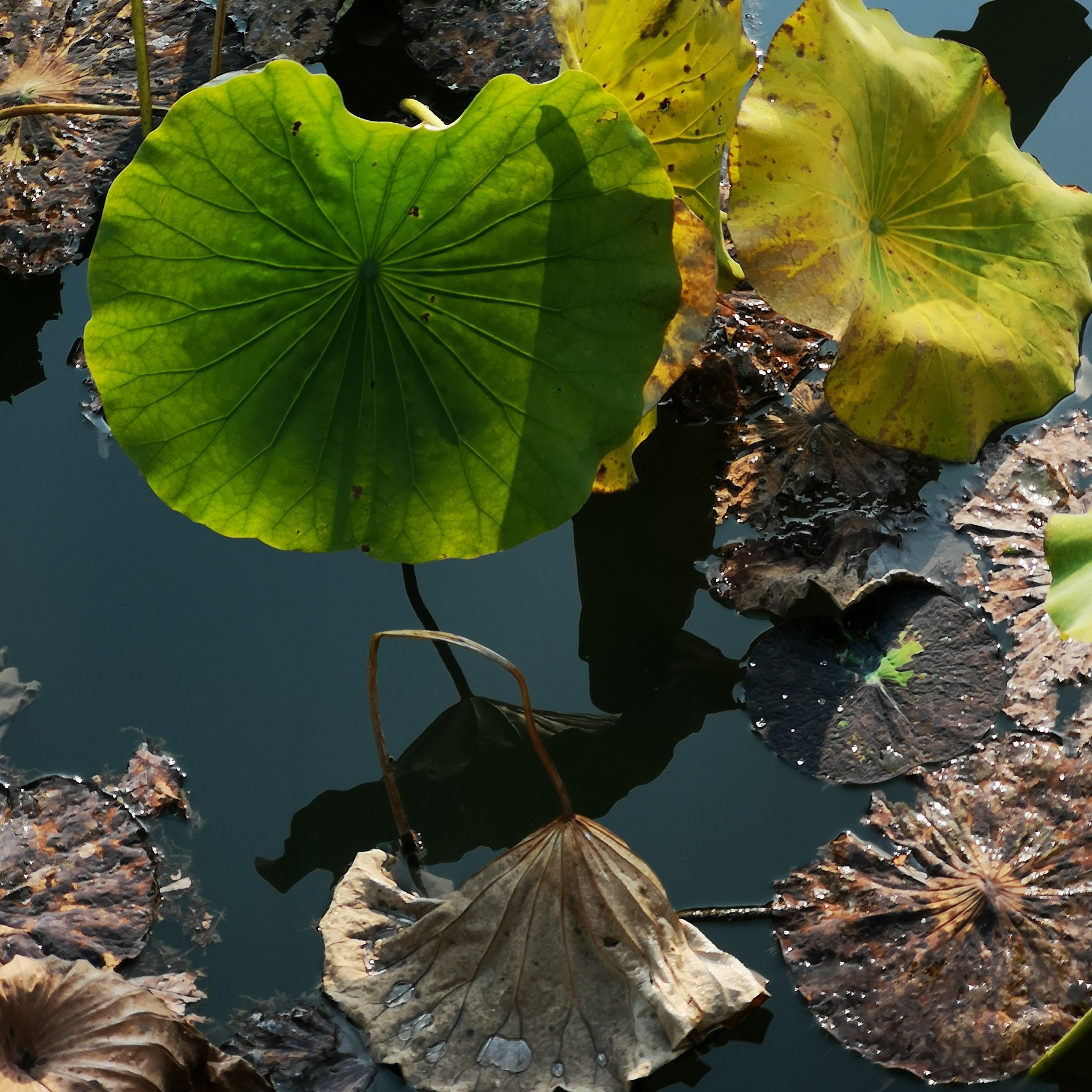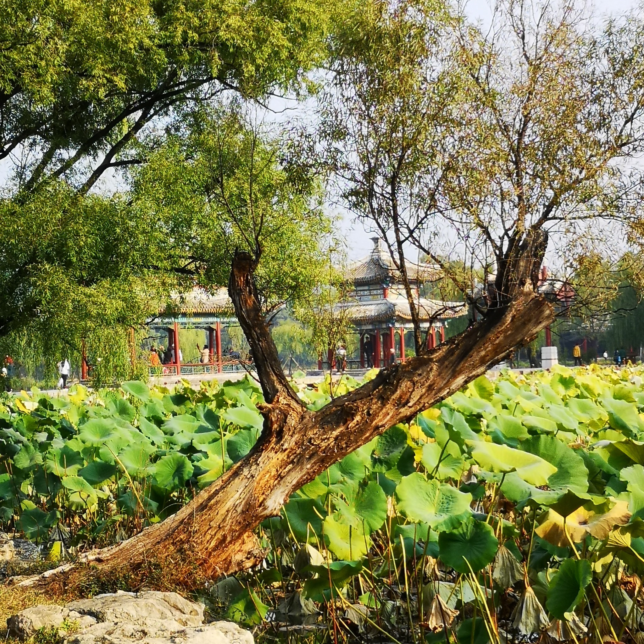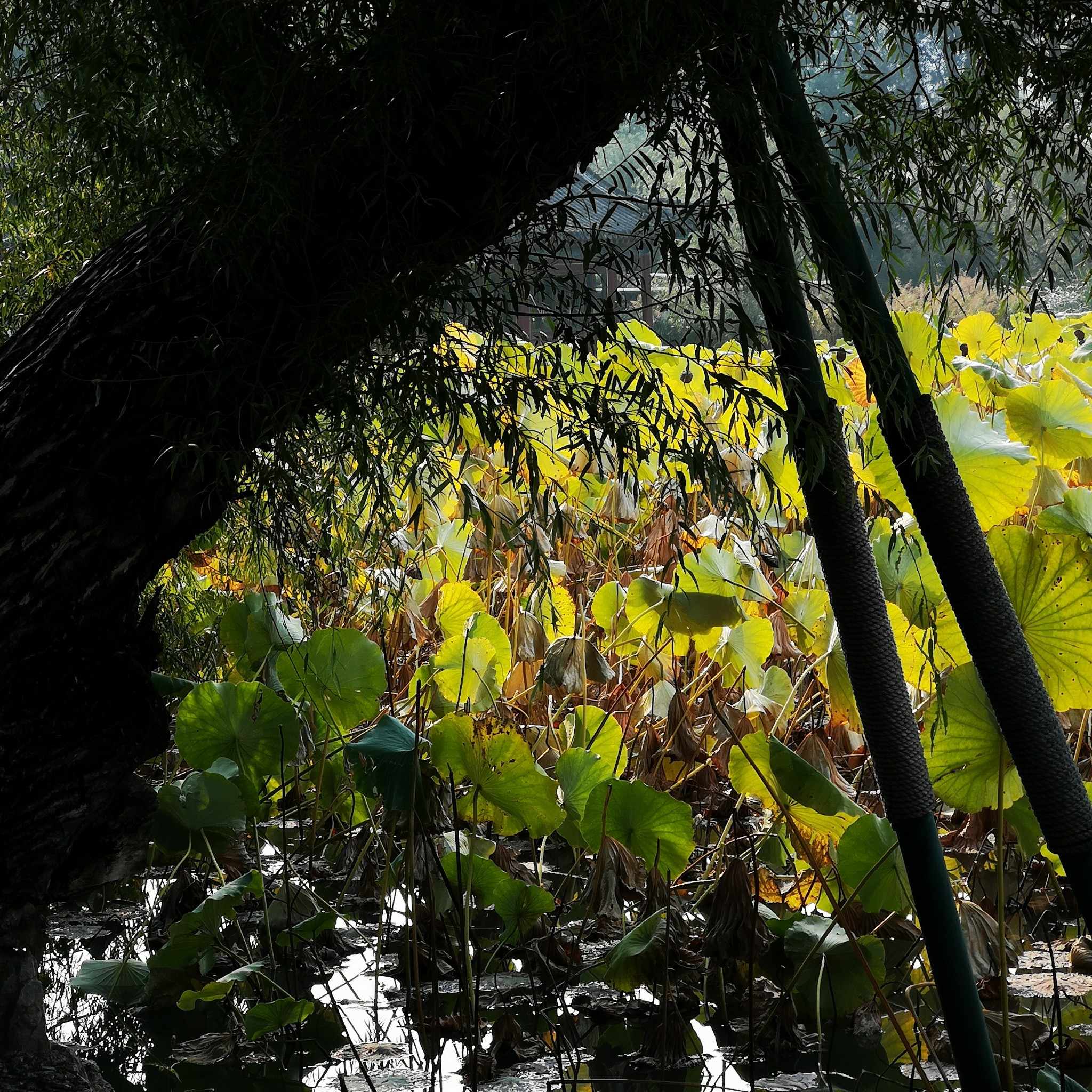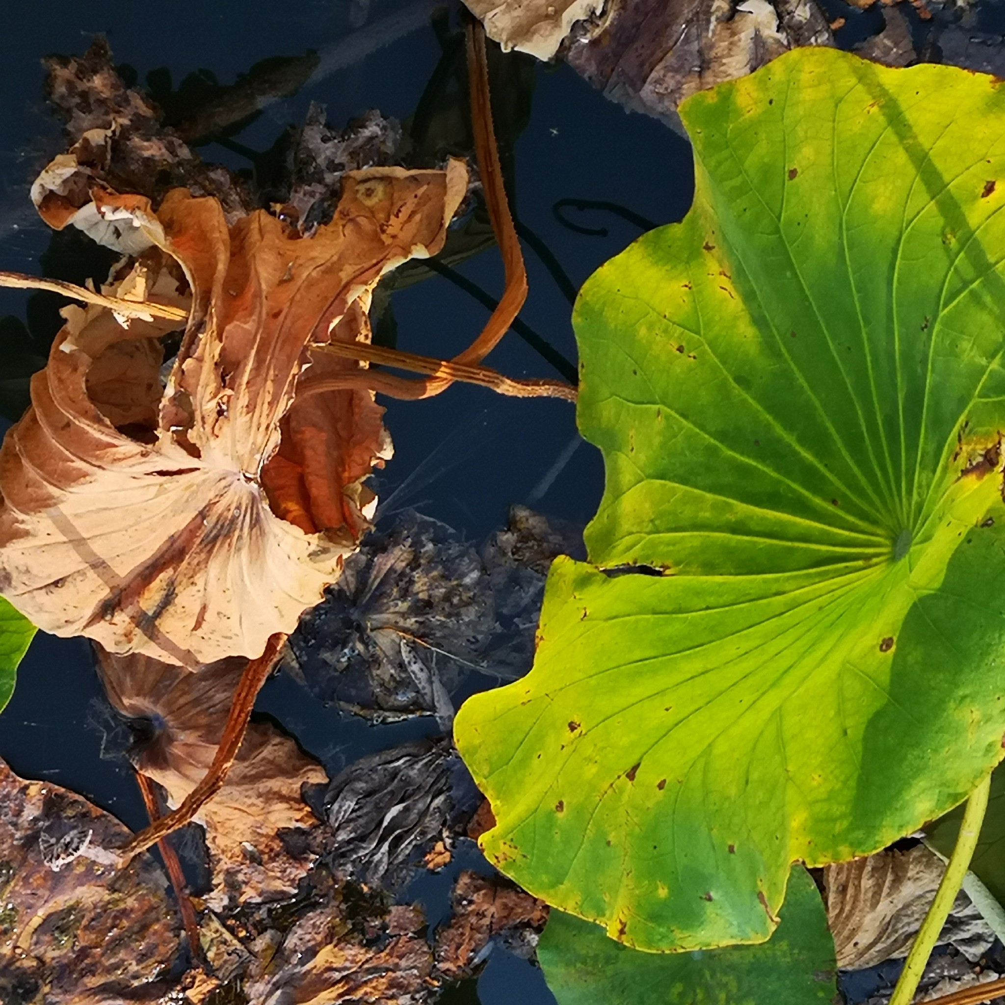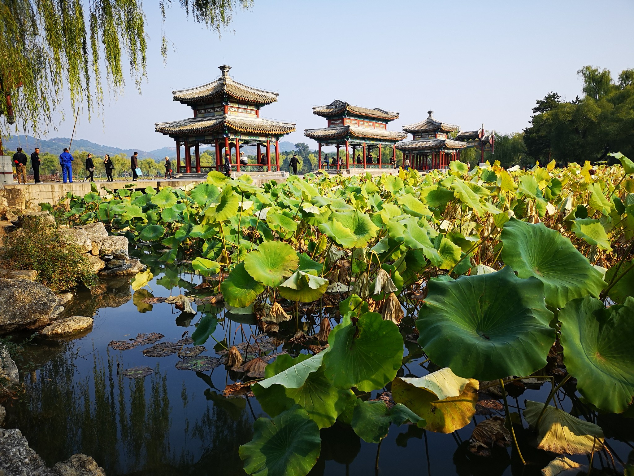 现在已过中秋,荷塘里,芳华已谢,只有接天莲叶无穷。