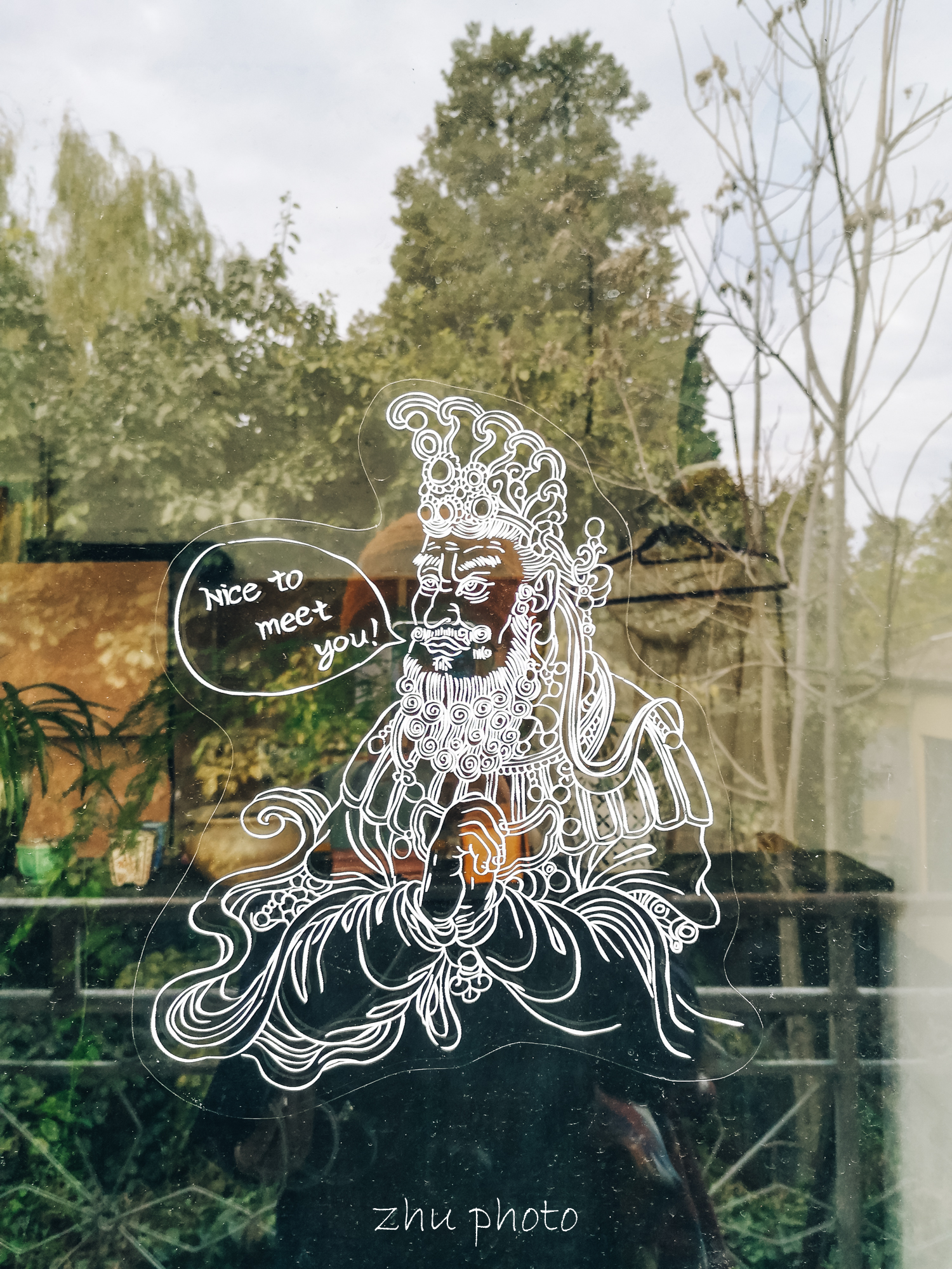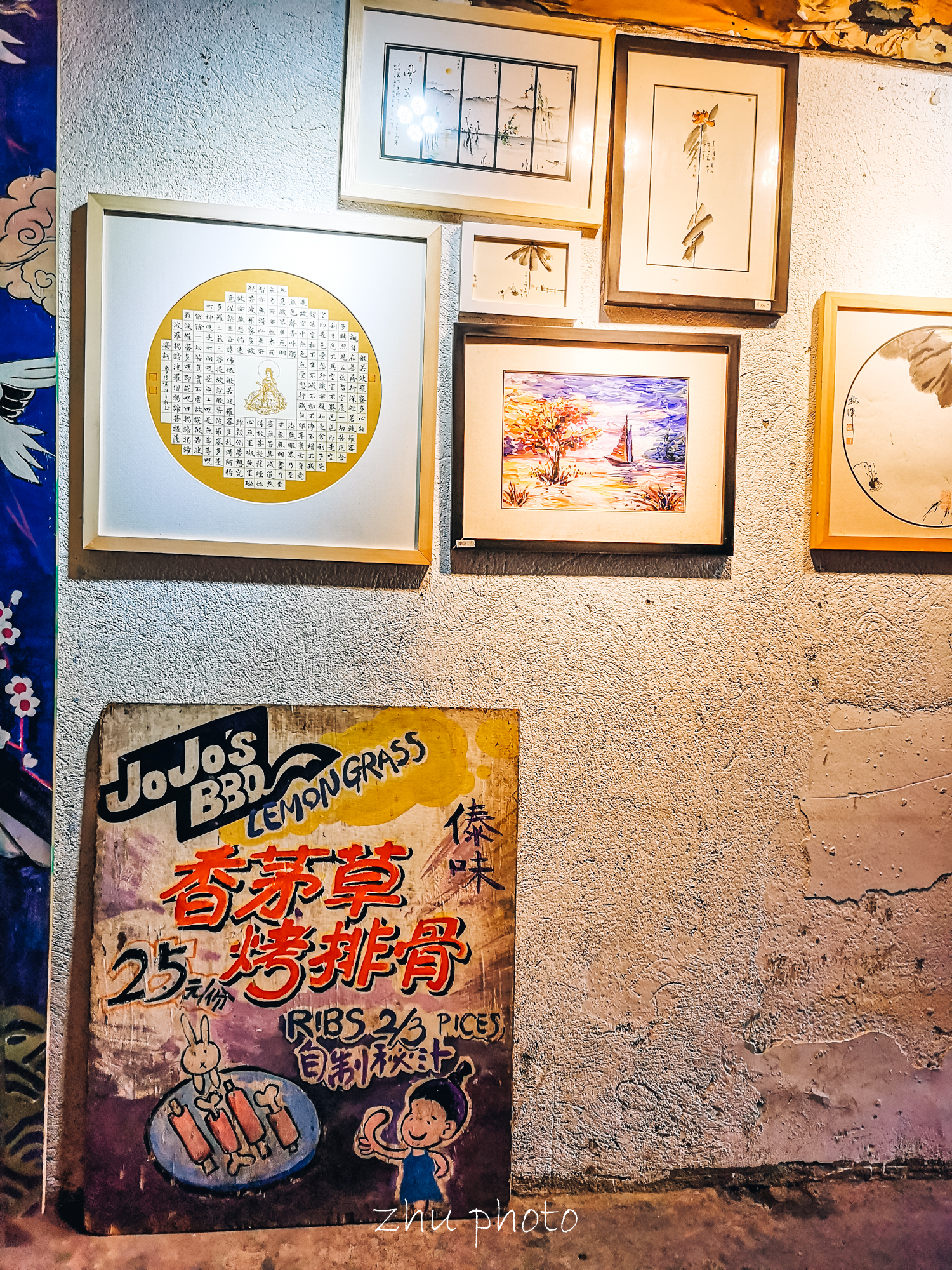 画者见状邀我进她身后的店里慢慢写慢慢画,我才发现店里也是一副用画笔描绘装饰的模样,问了才知,画者每日作画到下午4点,4点之后这小店就摇身一变,变成了一家卖烤排骨的小店,食店是画者朋友经营,食店的招牌也是画者执笔。
