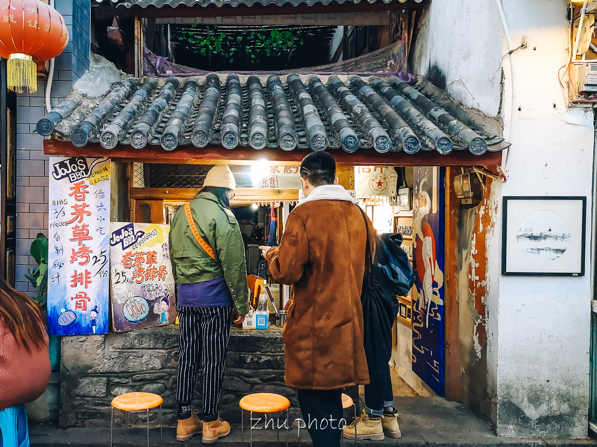 从洱海门向西出城,这一整条街都是人民路,人民路中间的一段是步行街,白天的人民路和夜晚的人民路截然不同。大部分有歌手驻唱的餐厅白天都是关门的,所以白天的人民路宁静祥和,大理四中书声朗朗,夜里的人民路又民谣绕梁,深夜食堂。
