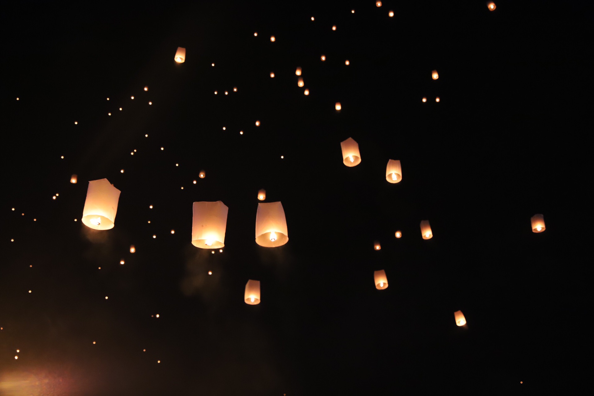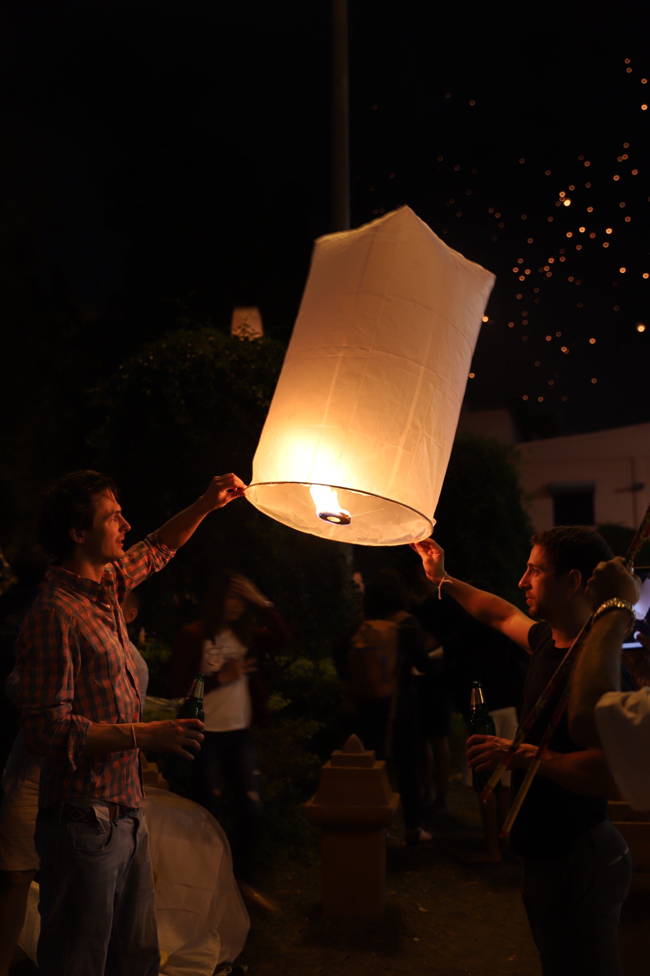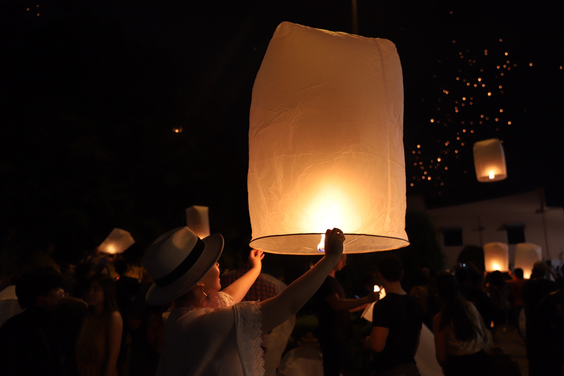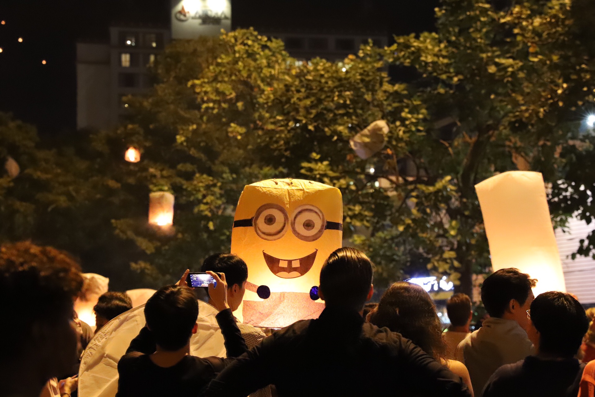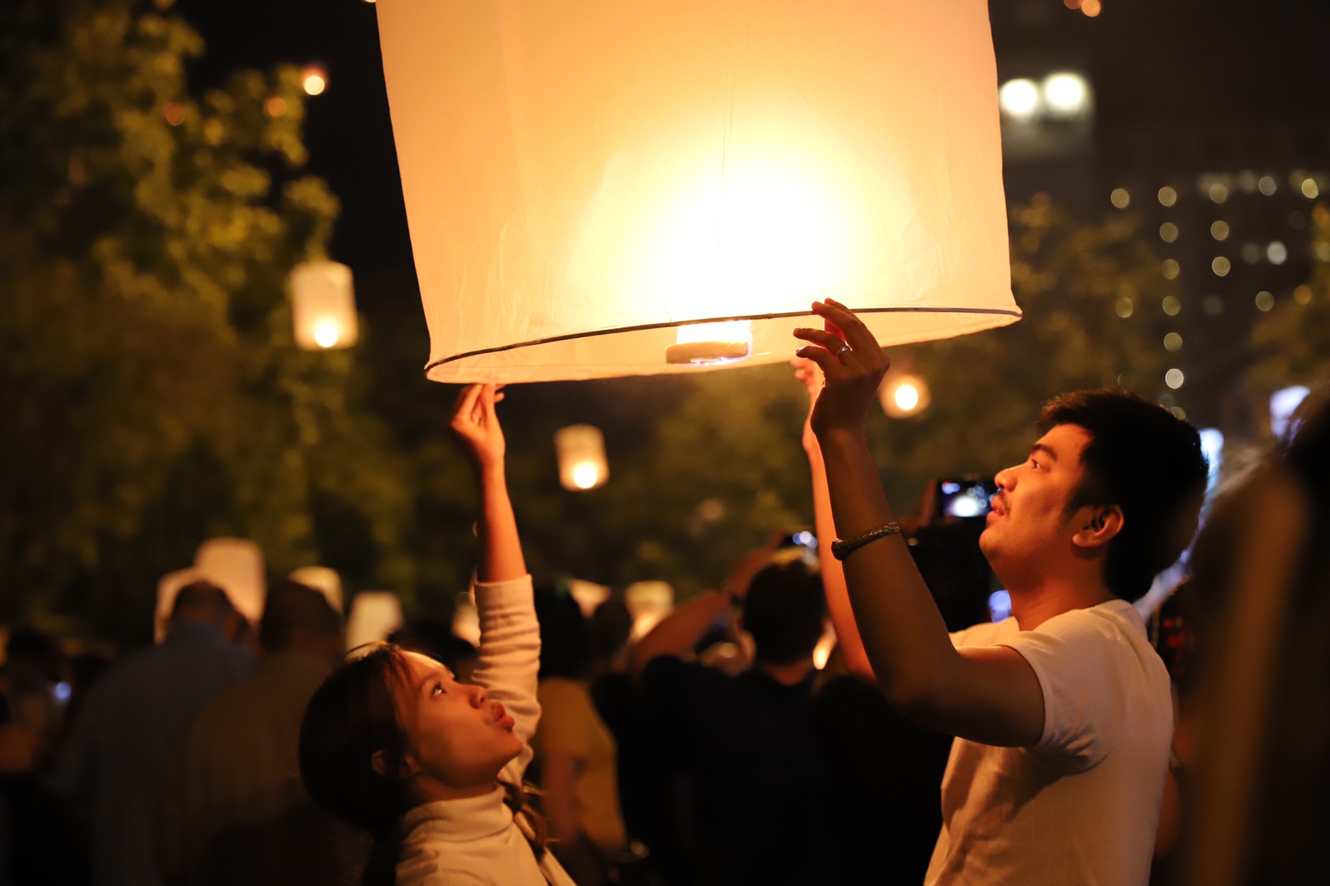 加紧脚步走到塔佩门。好多人都已经在那里了,我也迫不及待的买了天灯和小伙伴放起来。