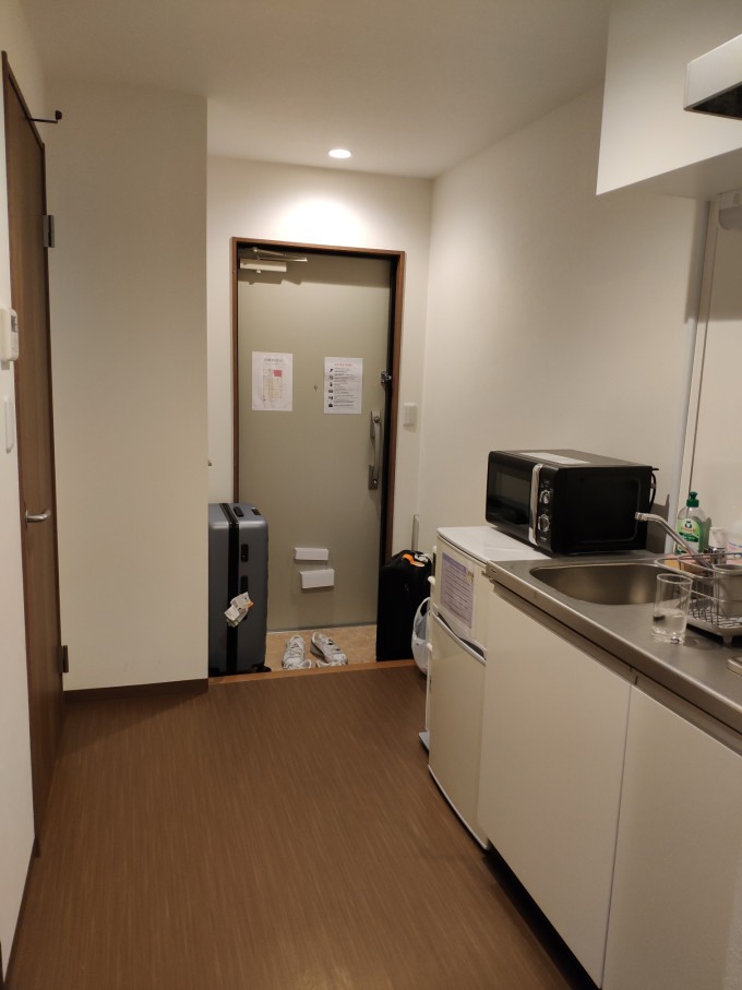 这是我们的民宿,在一楼取钥匙去房间,刚到的时候我们觉得房间不大,但是麻雀虽小五脏俱全,马桶和淋浴间分离,有洗衣机,卫生间有干燥暖房等功能,电器很现代化,房间设备很新,阳台可以晒衣服,环境安静,走到难波站不到10分钟,是全程中我们评价最高的民宿!