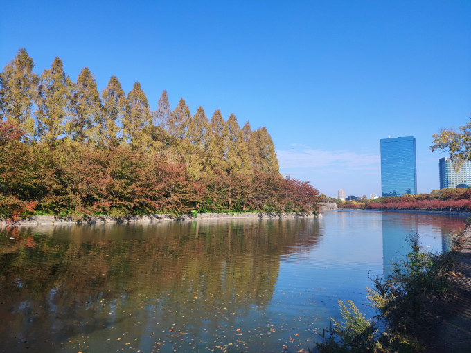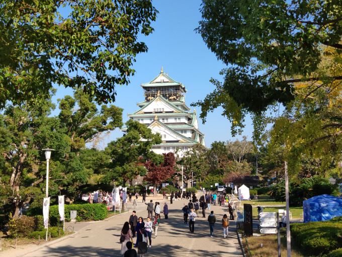 这条天气很好,做攻略的时候我对大阪城公园没报期望,但是日本植被很丰富,就像上图的风景,有半红半绿的枫叶,有黄色的银杏,还有各种绿色但树叶形态各异的植物,再配上蓝天白云,手机随便一拍都很美,值得一去。