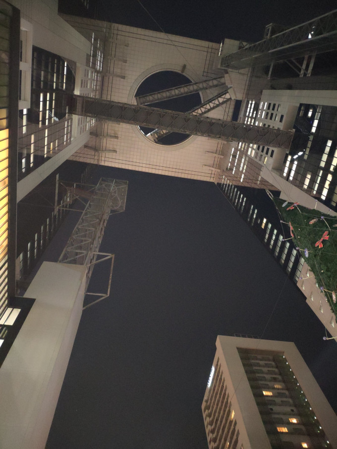 。逛完百货出来天都黑了,日本真的天黑很早,5点半差不多就黑完了,我两赶紧去梅田蓝天大厦。梅田蓝天大厦40多层就能看夜景了,因为大阪的建筑都比较矮,相比之下还是东京夜景更好看,这个景点有时间的可以去看看。