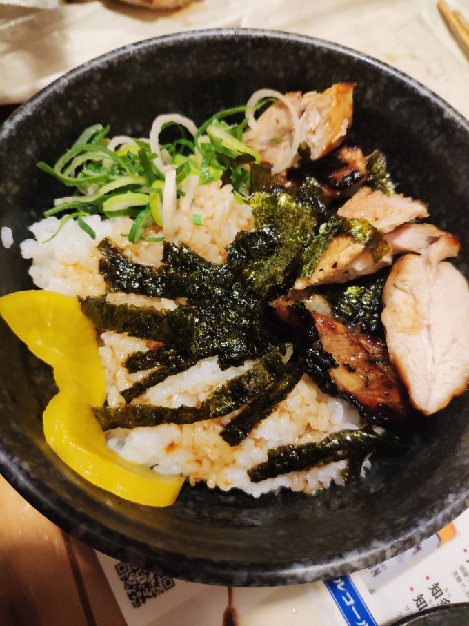 可以问服务员要中文菜单,点菜速度一下就快了,全是鸡肉烤串,点了很多种我记得有两种口味,酱汁的比较入味,盐的那种比较清淡,平价又好吃,推荐!