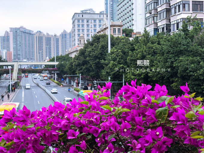 虽然广州在我们去的那几天很冷,但是走在街上,放眼望去, 这片三角梅让人忽然回神,我们来到了南方