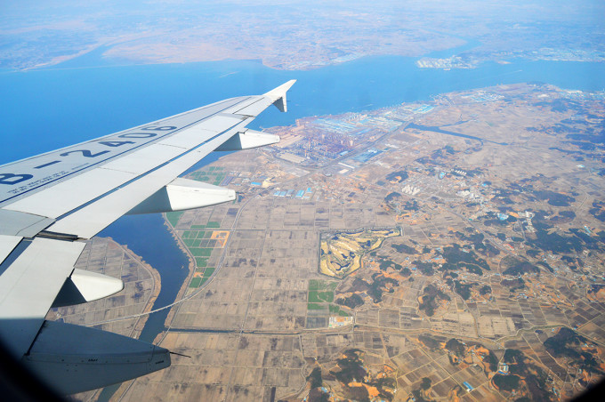 准备降落!往下望韩国的景观,嗯……不是很好看,想起多年前同学说他哥哥来韩国,觉得很多地方都破破的。有点担心是不是来错地方了(没事,后面会证明担心是多余的)