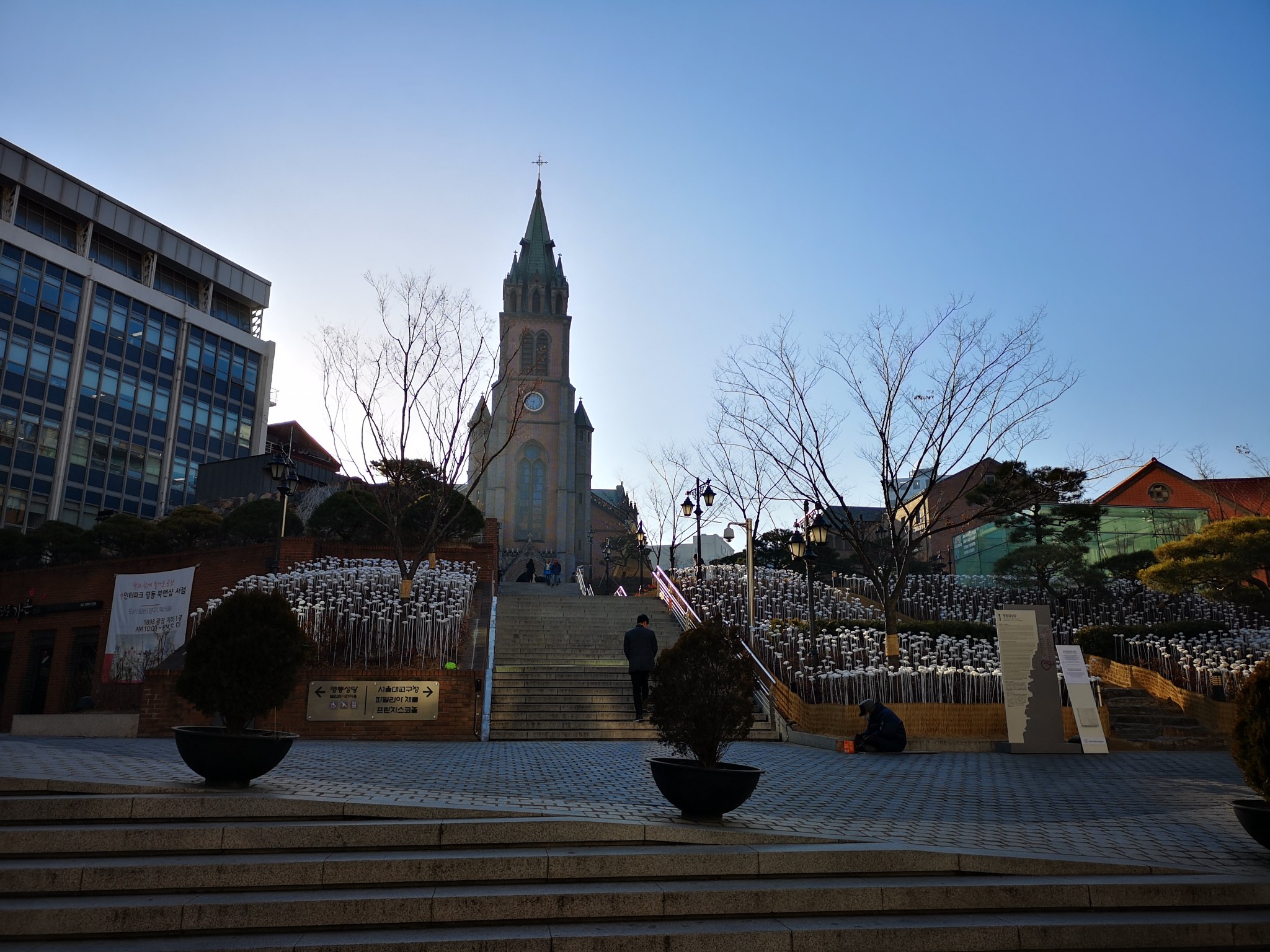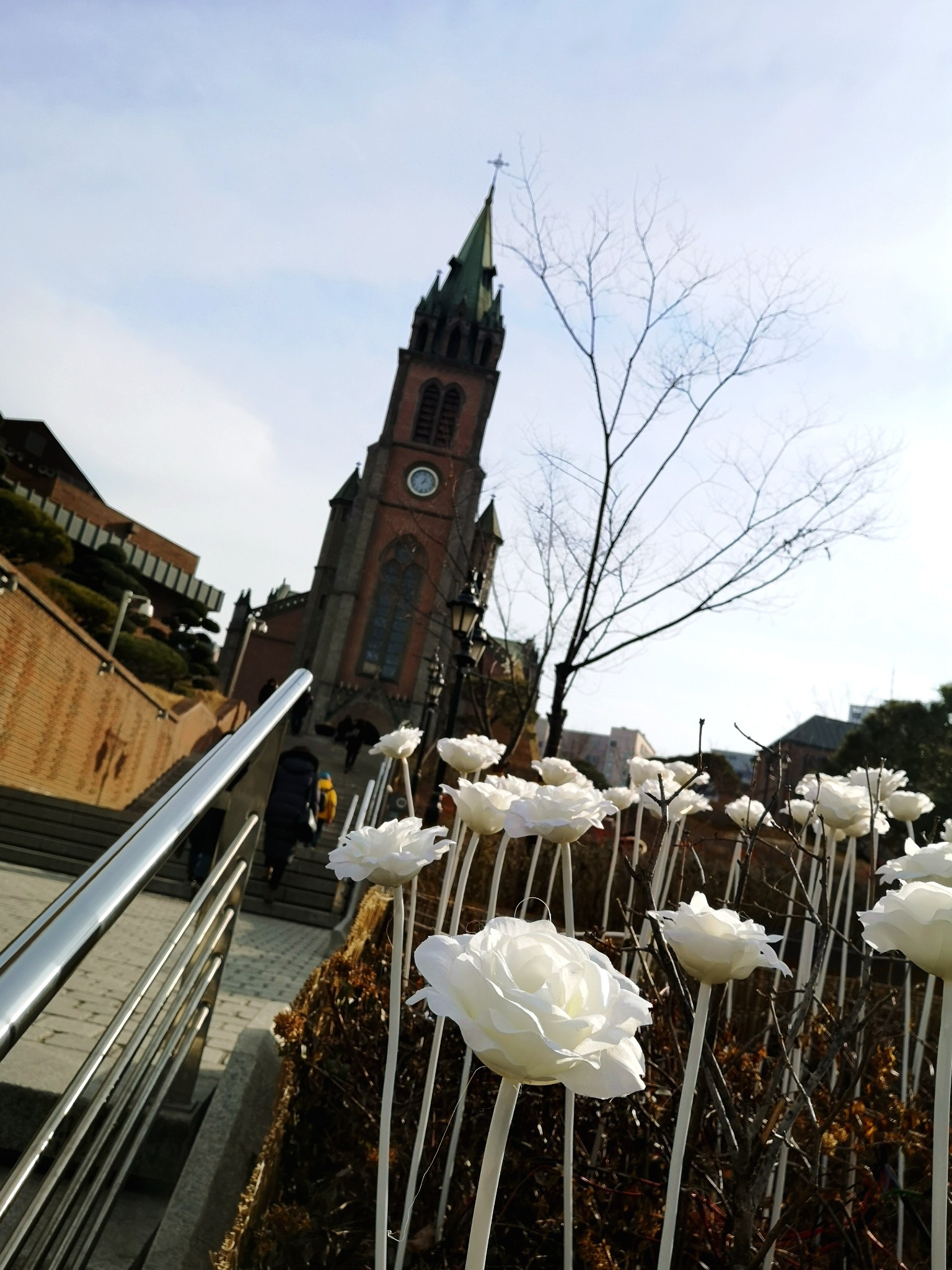 一路来到明洞天主教堂,它是韩国的第一座教堂,也是韩国第一座哥特式建筑,被韩国列为国家258号文物。
