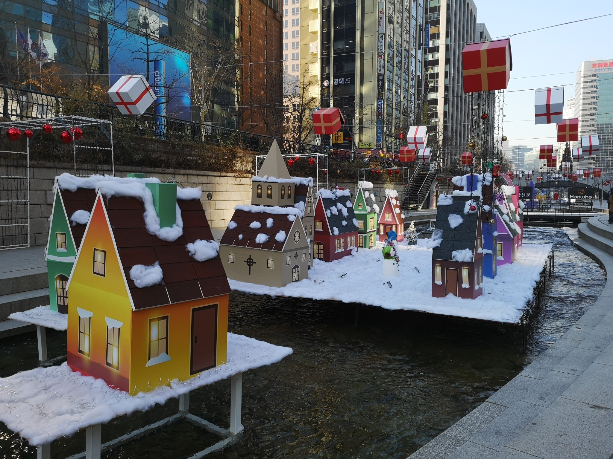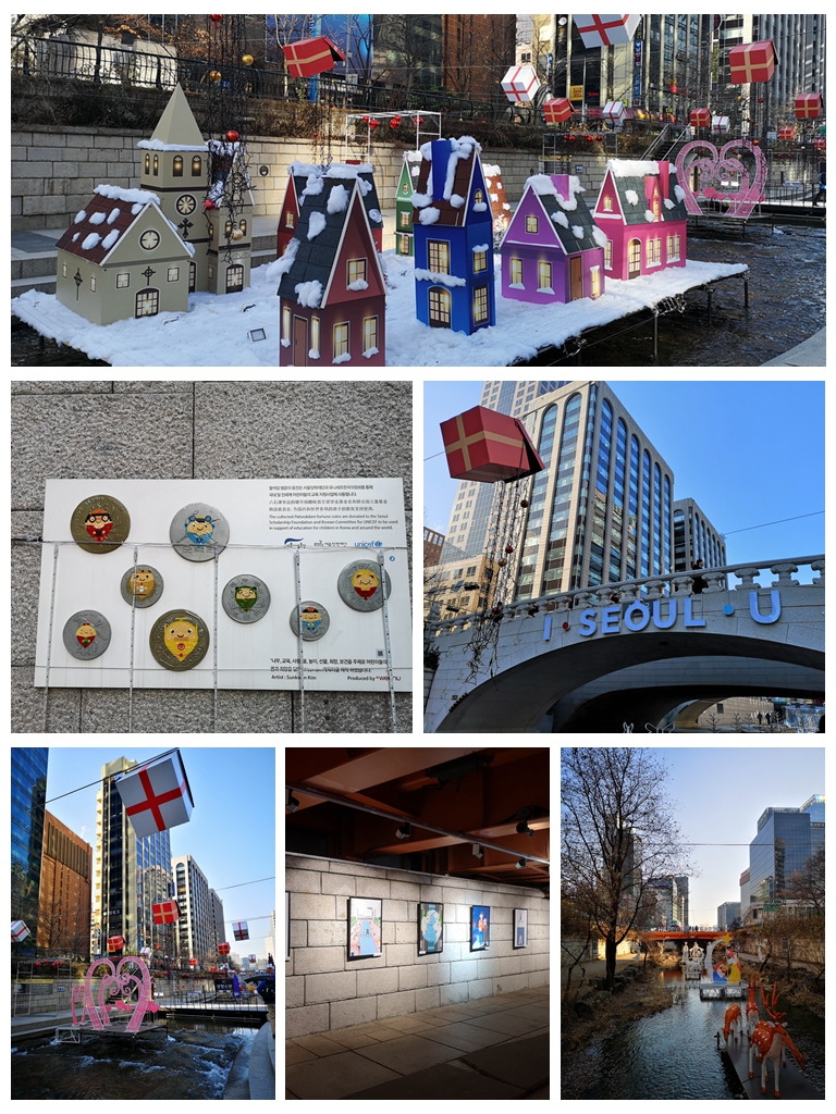 顺着清溪川往光华门广场方向走,溪面上建了很多灯,夜晚一定很漂亮。
