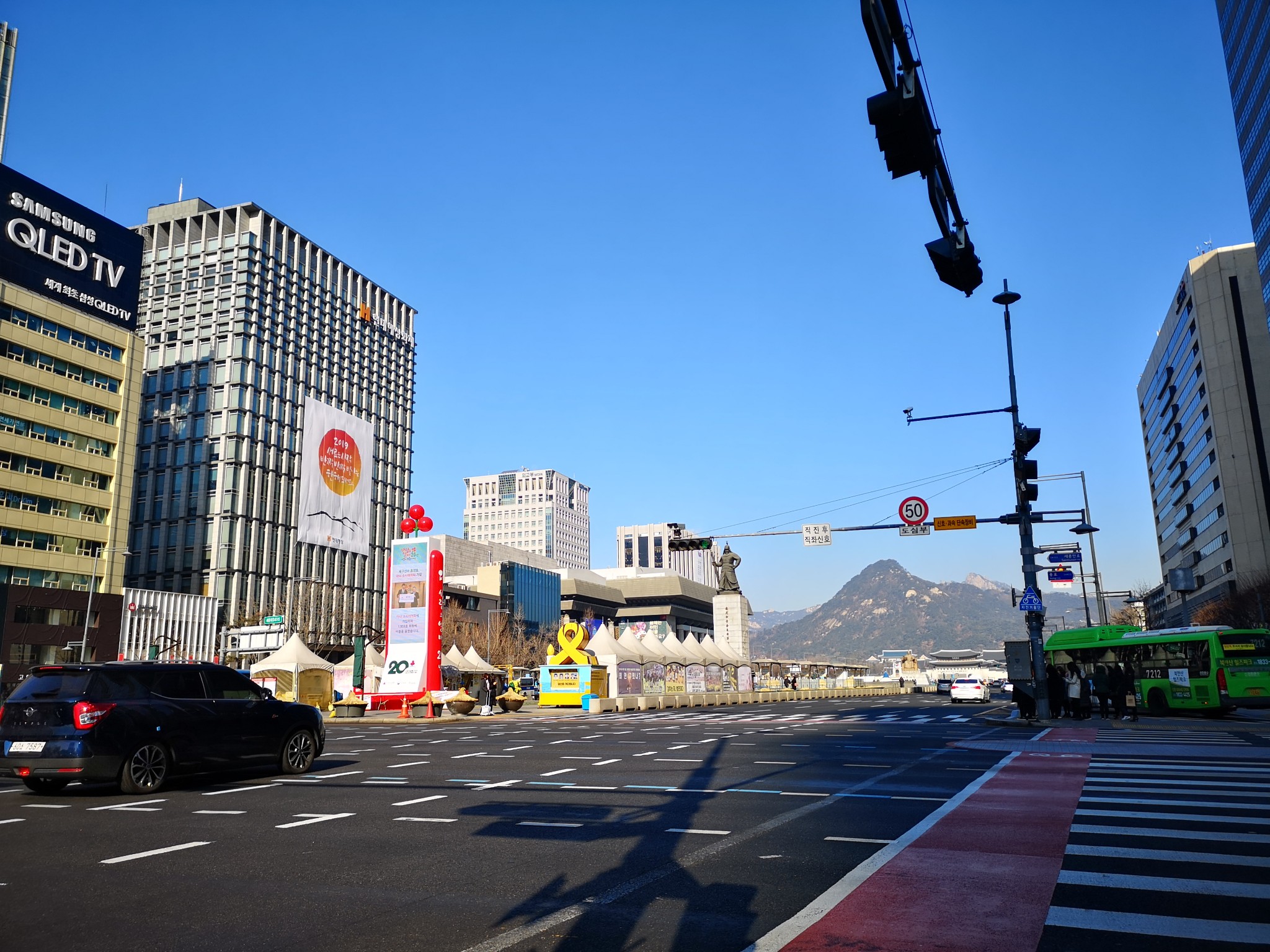 光华门广场景观是不错的,非常开阔,远远望去,光华门后映衬着远山。广场周围集中了韩国主要的政治、行政部门,还有博物馆,下次有机会再一下。