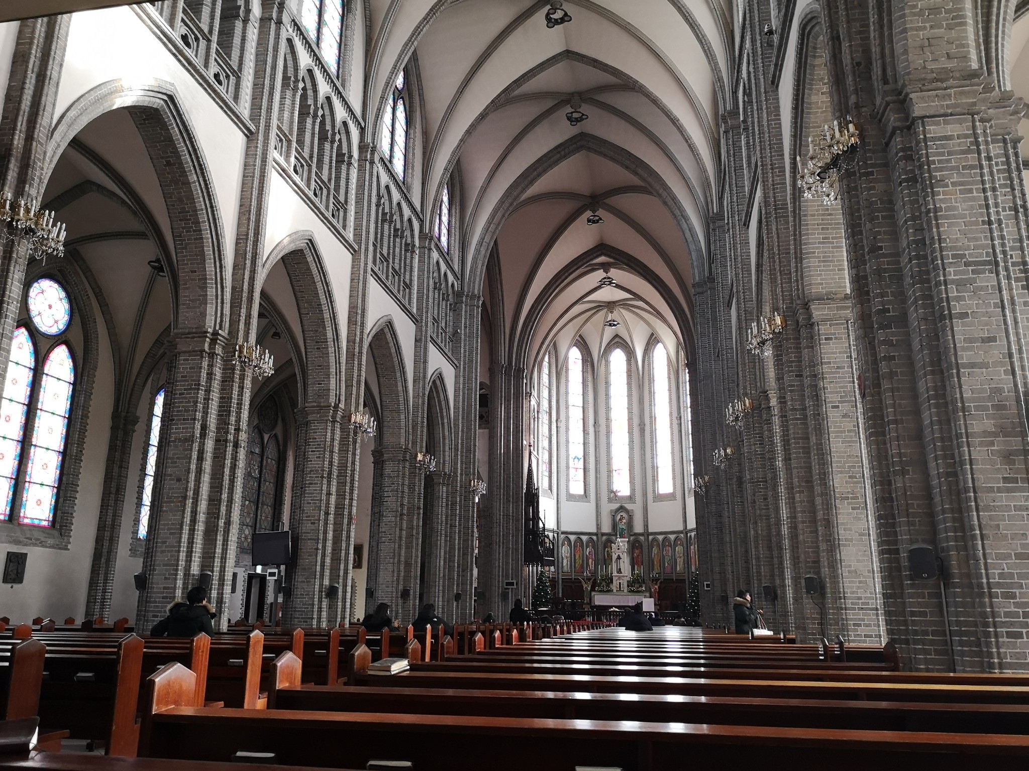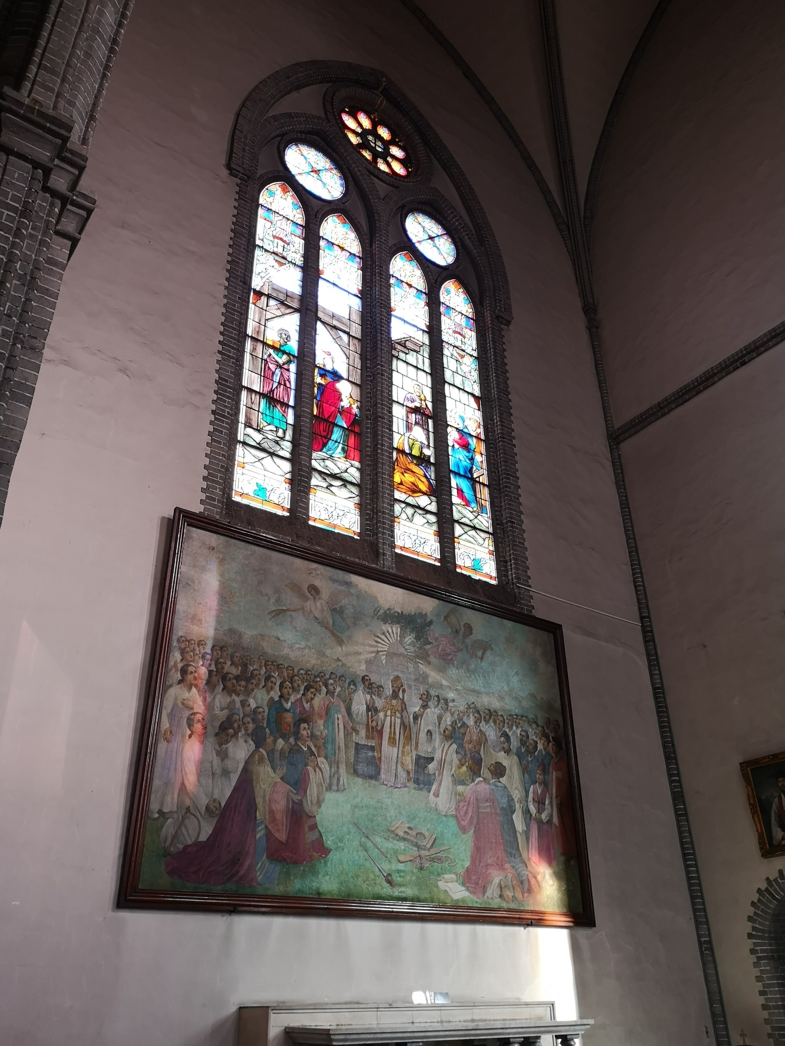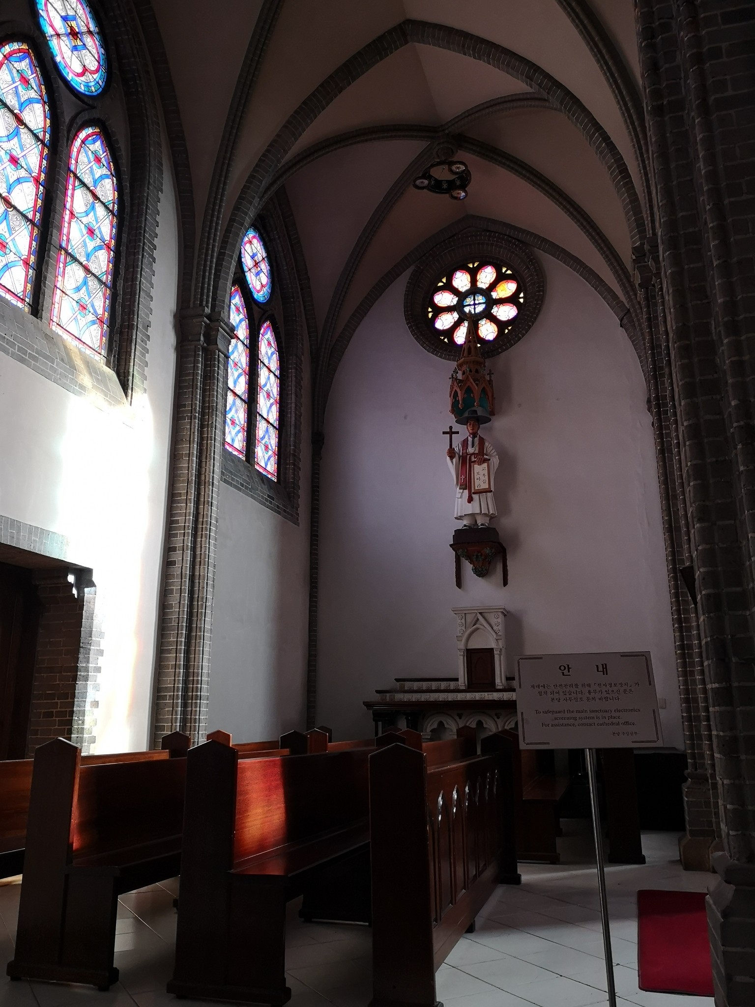 注意到的比较特殊的两点,一是除了西方圣经中的人物和故事,还有一些记录天主教传入韩国的人物和场景,这个在国内教堂没有见过。