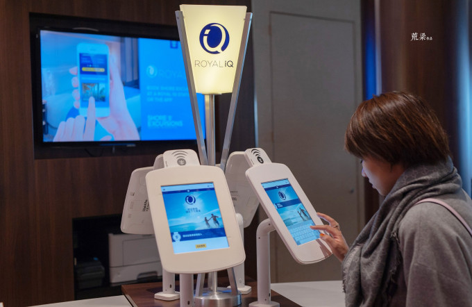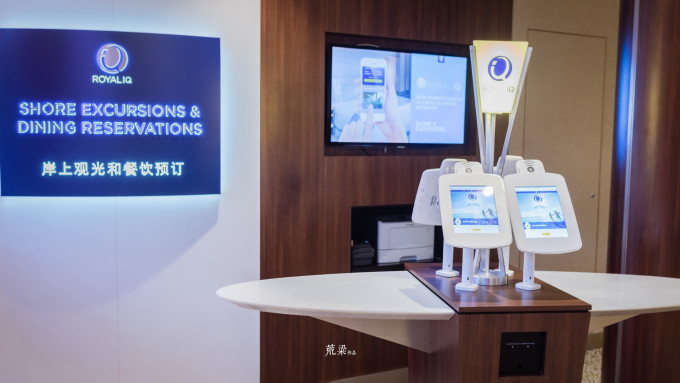 接下来,有一个角落是“岸上观光和餐饮预订”处,简称是Royal IQ。你可以在此预订收费餐厅的餐饮,船上游乐项目和演出节目。预订不是意味着都要收费,而是像一些项目因为次数有限,先到先得,比如晚上的舞台演出《星海传奇》就很抢手,座位有限,所以上船后请尽快去挑选时间,毕竟全程也就演出四次而已。其他游乐项目倒不一定需要提前预订,看你个人喜好。