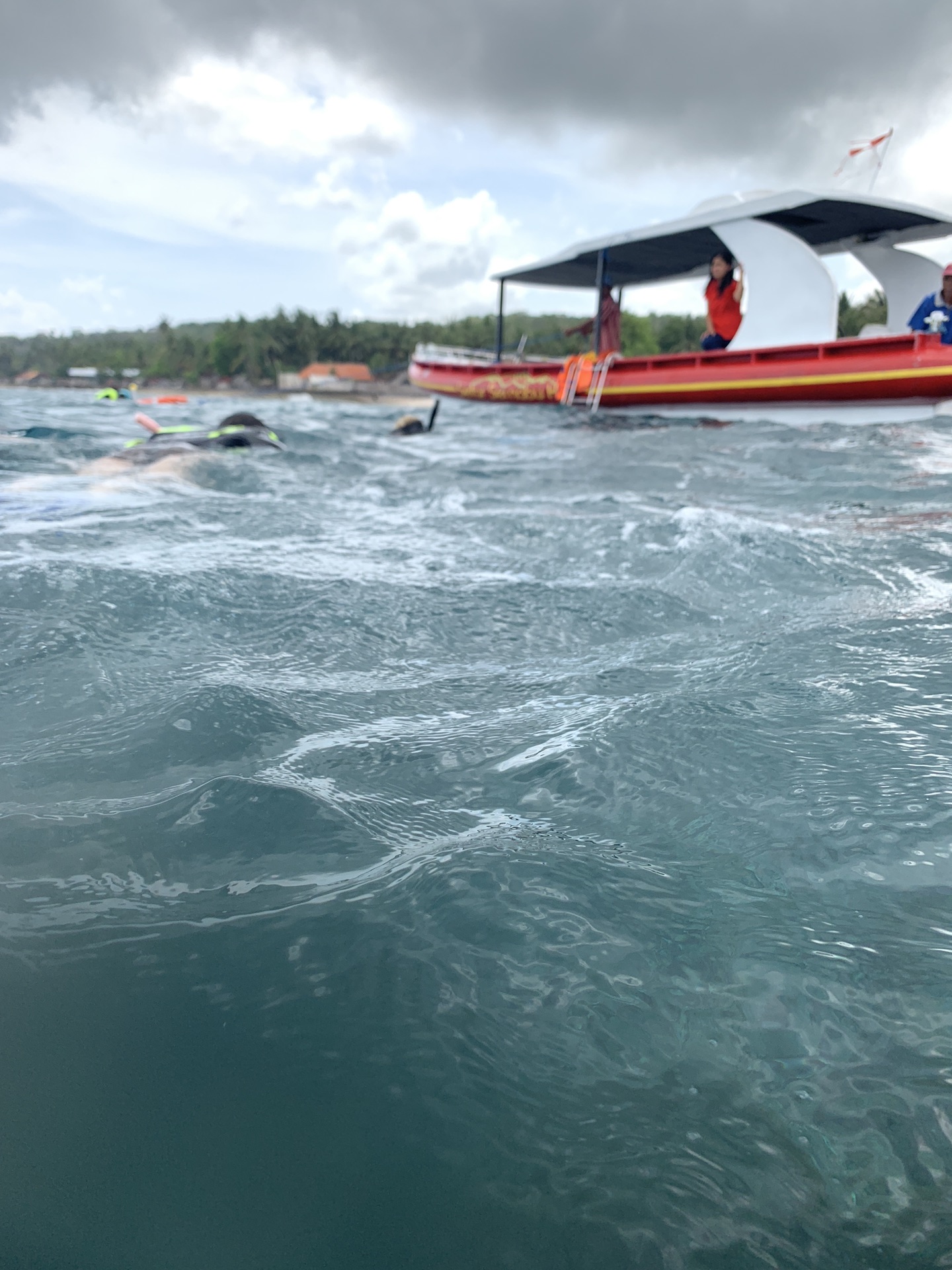 在马蜂窝提前预定的一日游行程,大概400/人,司机会到酒店接送。七点左右司机就准时到达酒店大厅,阿姆娜雅酒店的服务超级好,我们出门早还可以提供免费的早餐打包服务。不到八点车就到码头,等了大概半个多小时开始上船出发去佩妮达岛。船程大概有一个小时,浪较大,晕船的小伙伴准备好晕船药。我们踏上甲板吹着海风倒也惬意。