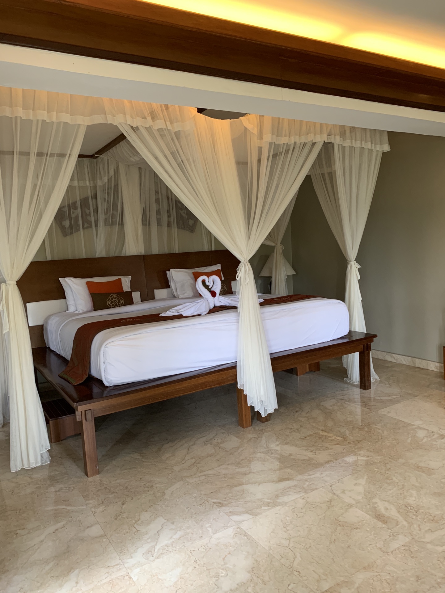 我们住的是基础房型-乌布木屋,房间很大,床超级大,酒店有提供免费的蜜月布置和蜜月蛋糕