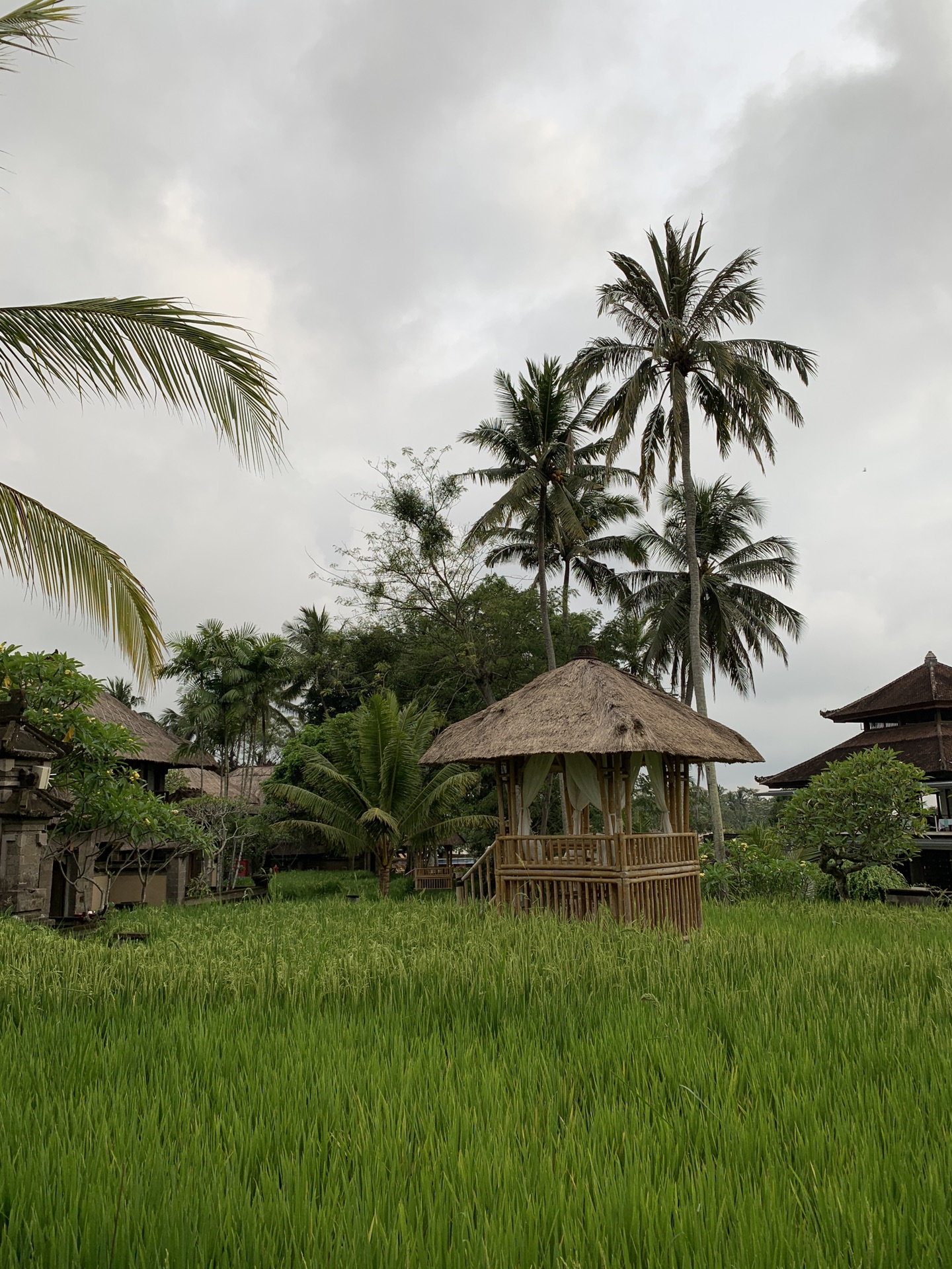 酒店内部的园林也很漂亮,稻田间有茅草亭子,非常精致。
