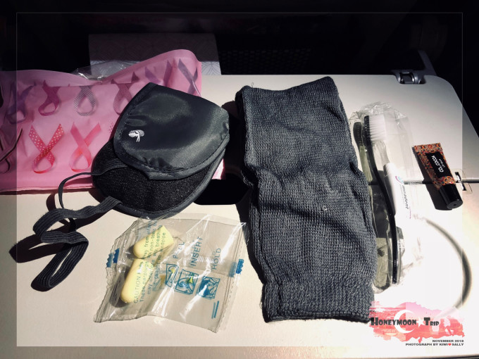 里面有袜子、眼罩、耳塞、牙膏、牙刷、润唇膏,装备齐全