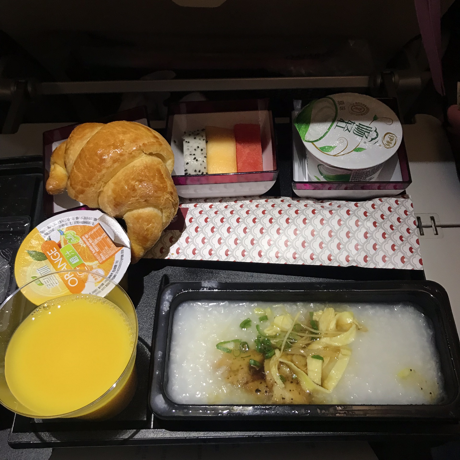 然而我们担心飞机餐吃不惯,也买了一袋羊角包。