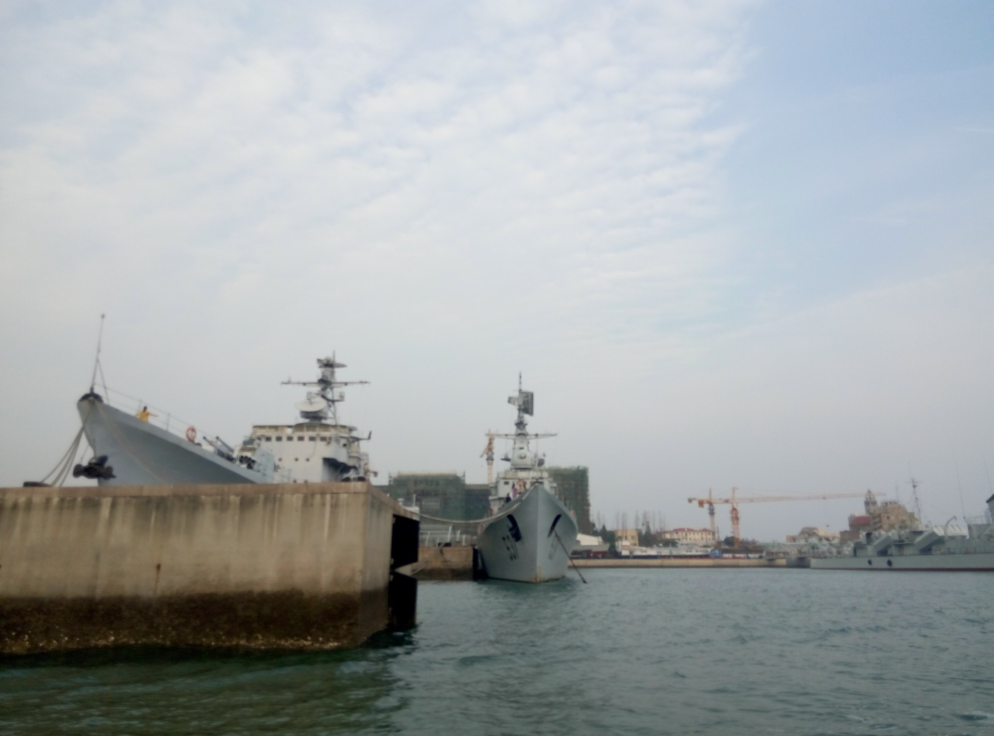 我们走到了小青岛公园 旁边就是海军博物馆 这是其中一艘军舰 特别帅气