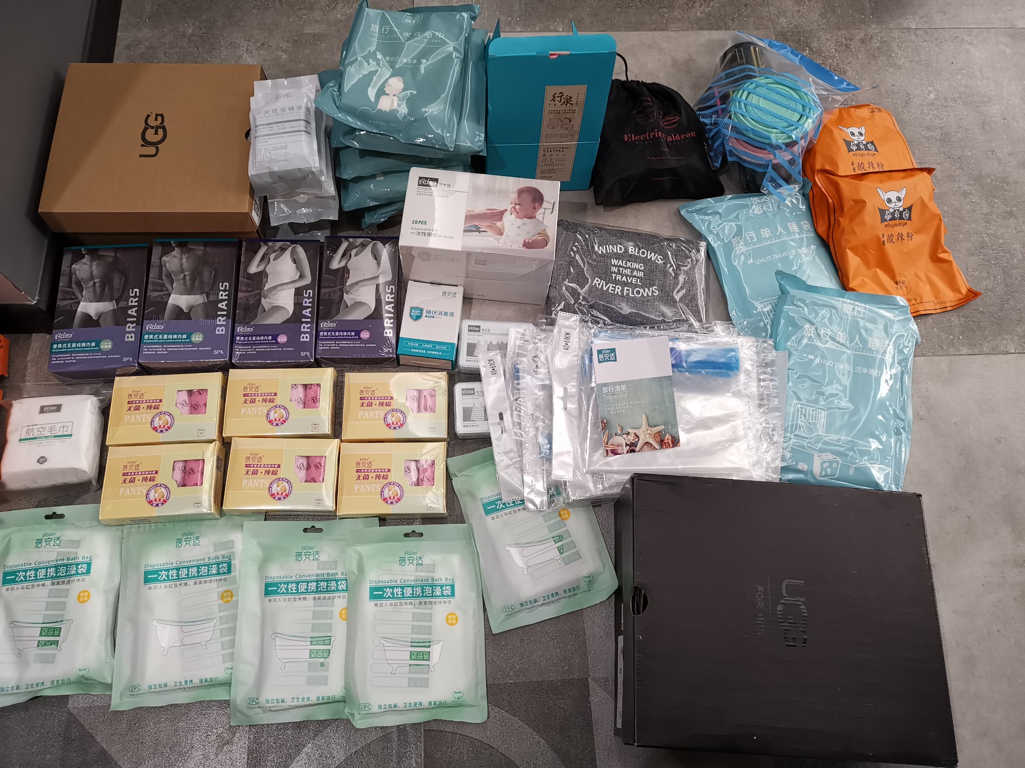 5.一些方便用具:一次性睡袋 一次性泡澡袋 一次性浴巾 一次性马桶垫 一次性洗脸巾 一次性内裤