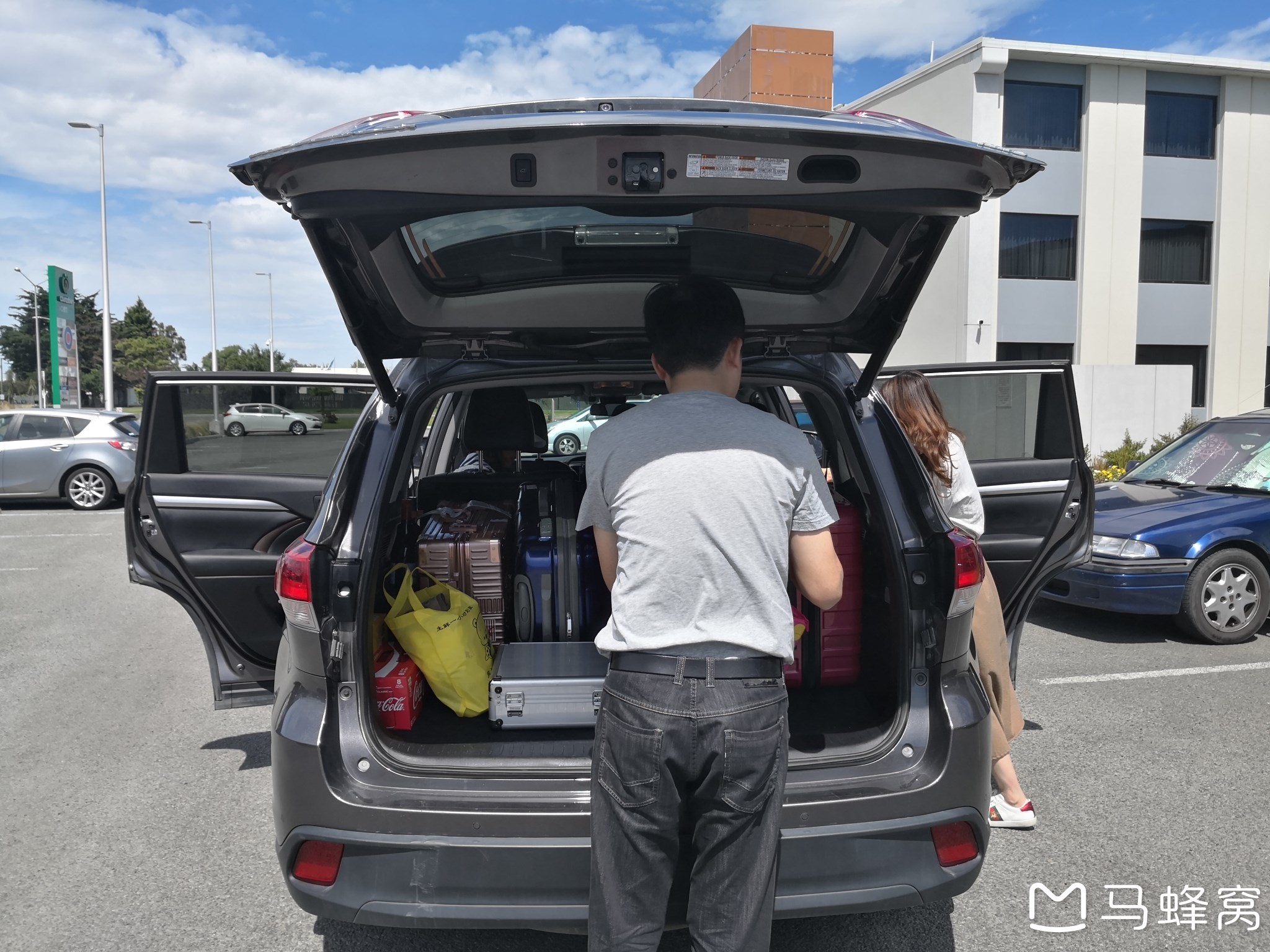 第二天一早起床就感受到新西兰白天强烈的紫外线,这让我兴奋无比,立马抓紧时间去机场Europcar柜台,顺利租到了Highlander,没想到这辆车还是海外版高配的。第一次开右舵的车,难免有点心慌慌的感觉,我不敢上路,先再停车场熟悉熟悉,兜兜圈子