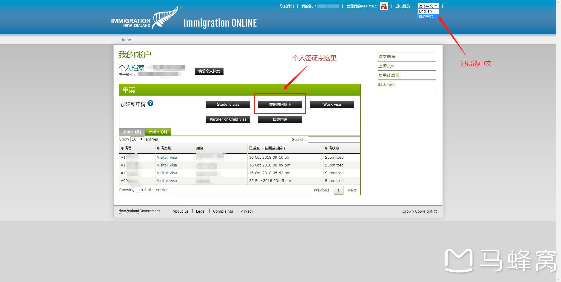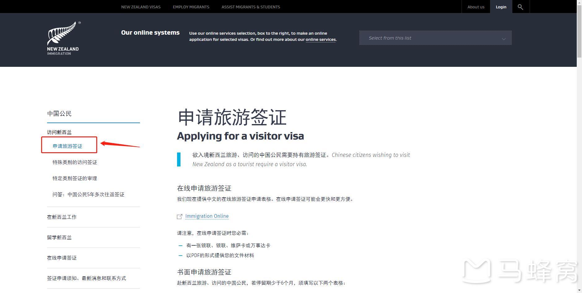 2、打开签证申请网站:https://www.immigration.govt.nz/audiences/chinese/visiting/visitor-visa