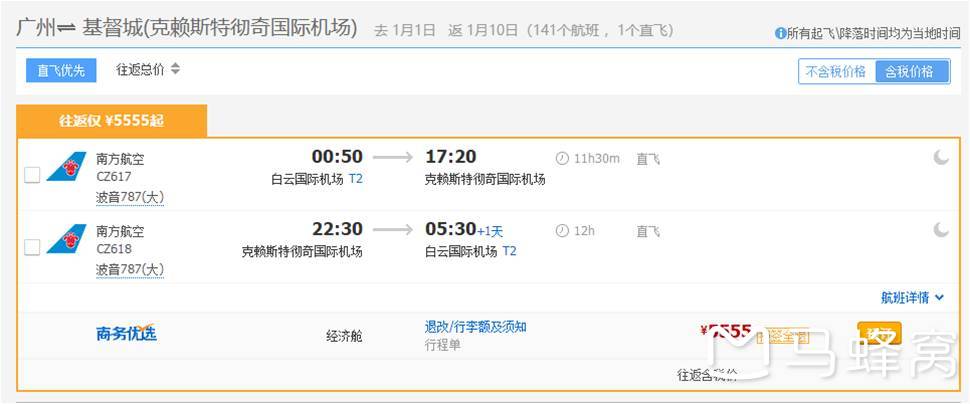 关于机票。我选择的是南方航空:CZ617/CZ618广州-基督城来回直飞,全程12小时,平日参考往返价¥5000-6000元。