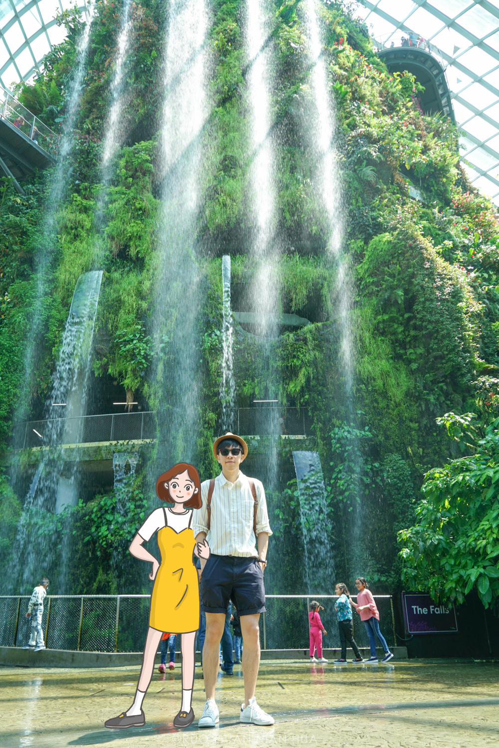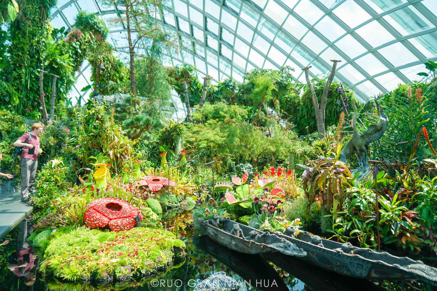 第一站云雾林(Cloud Forest),室内一座巨大的山体上,种满了各种植被和花卉,说它是现实版的“阿凡达里的丛林”一点也不过分。入口就是世界上最高的室内瀑布之一,足有30米高,营造了一个薄雾缭绕的绿色世界。在这里可考验小伙伴的拍照技术了,几乎趴在地上才帮我拍出这样一张全景。我新学了一招,大家可以试试手机的全景模式,把手机横倒着网上拍就可以拍出完整的全景。