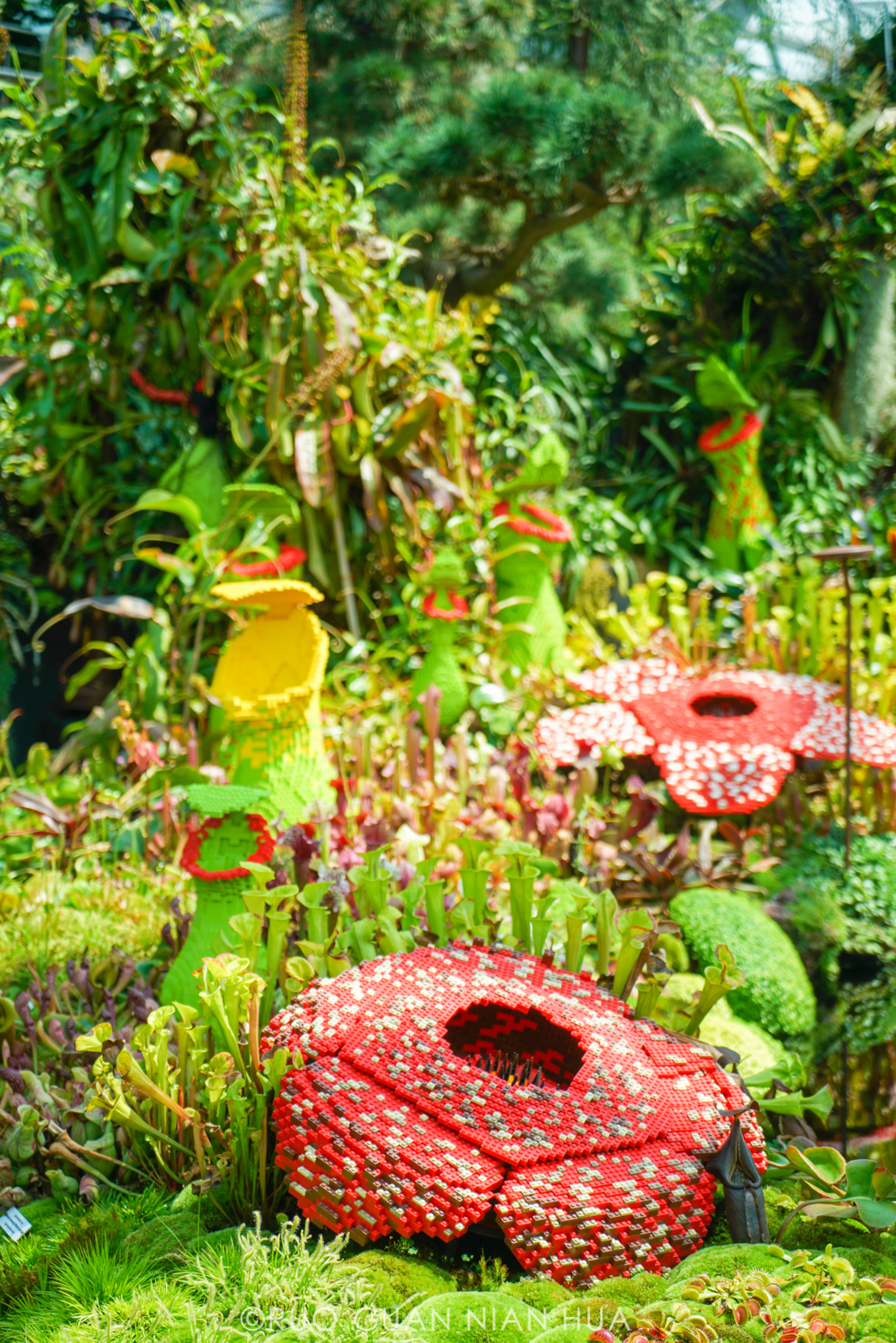 山顶这个区域是遗失的世界,这里能看到海拔2000米左右的常见植物,池塘边还用积木搭起了如食人花、猪笼草等植物,创意十足。