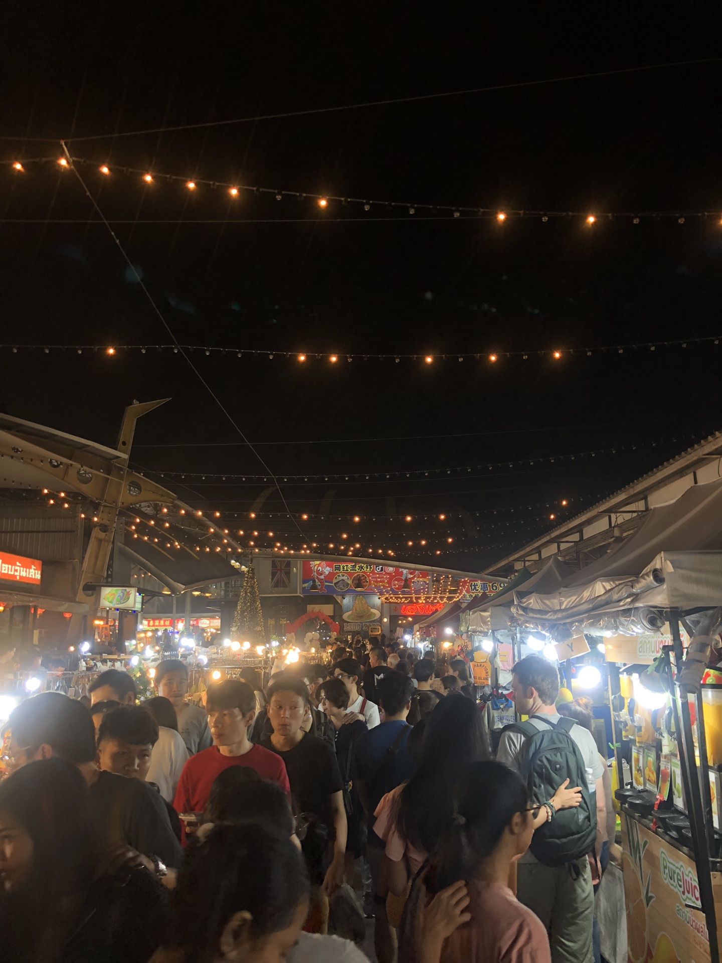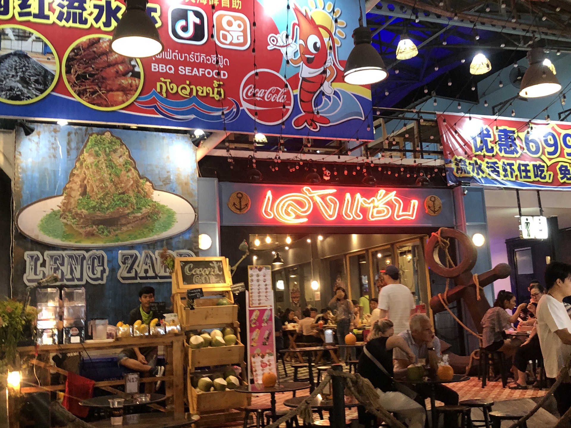 晚上我们去拉差达火车夜市打卡火山排骨。