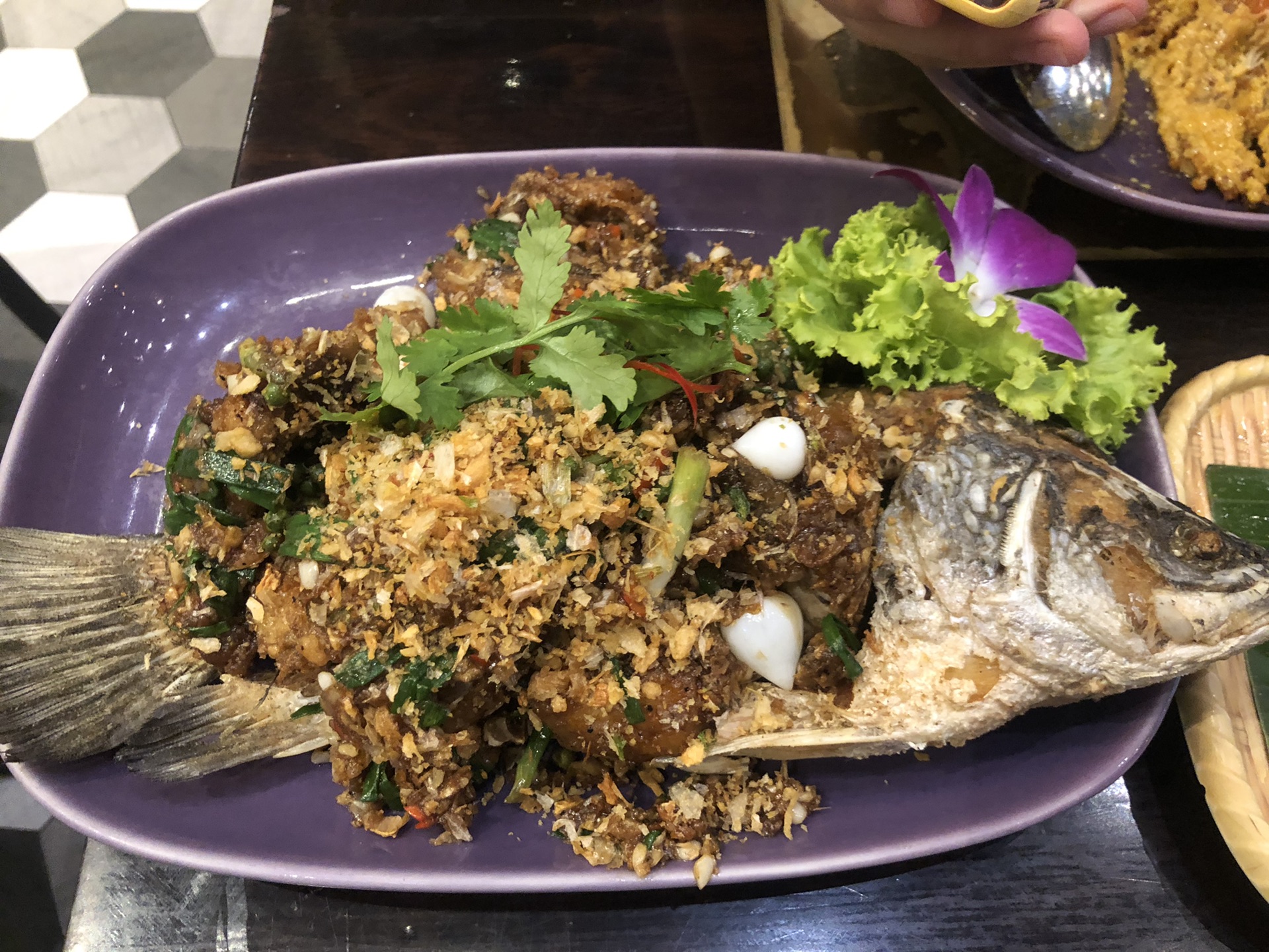 于是收拾收拾就去了,却没想到超级难吃,花了2000泰铢。尤其那个烤鱼,又硬又干,无法下口。