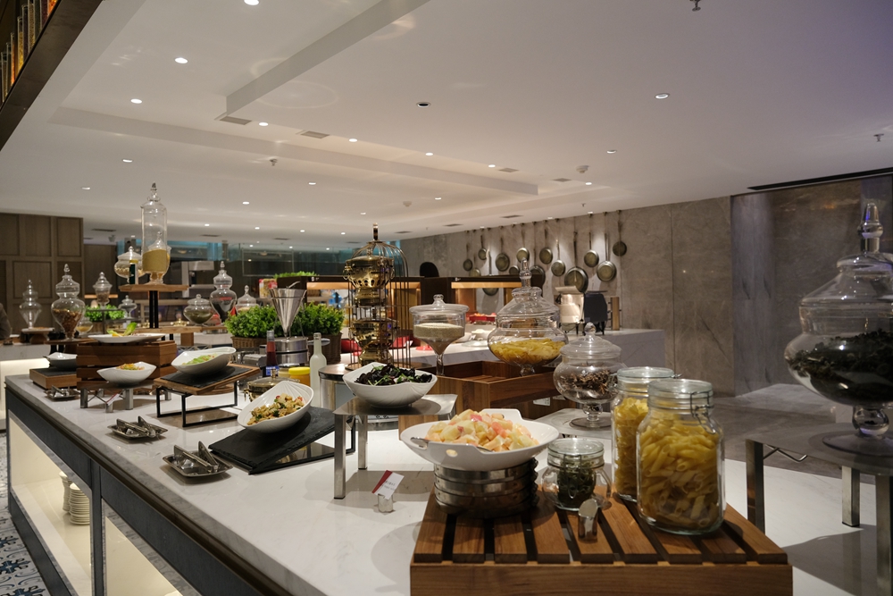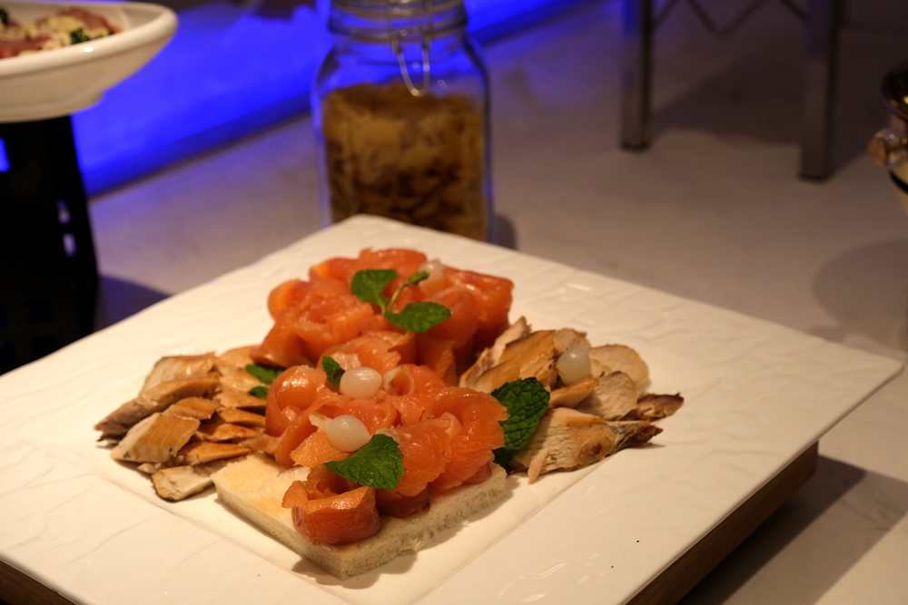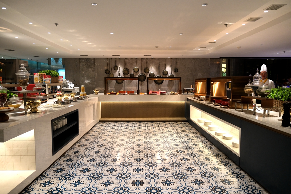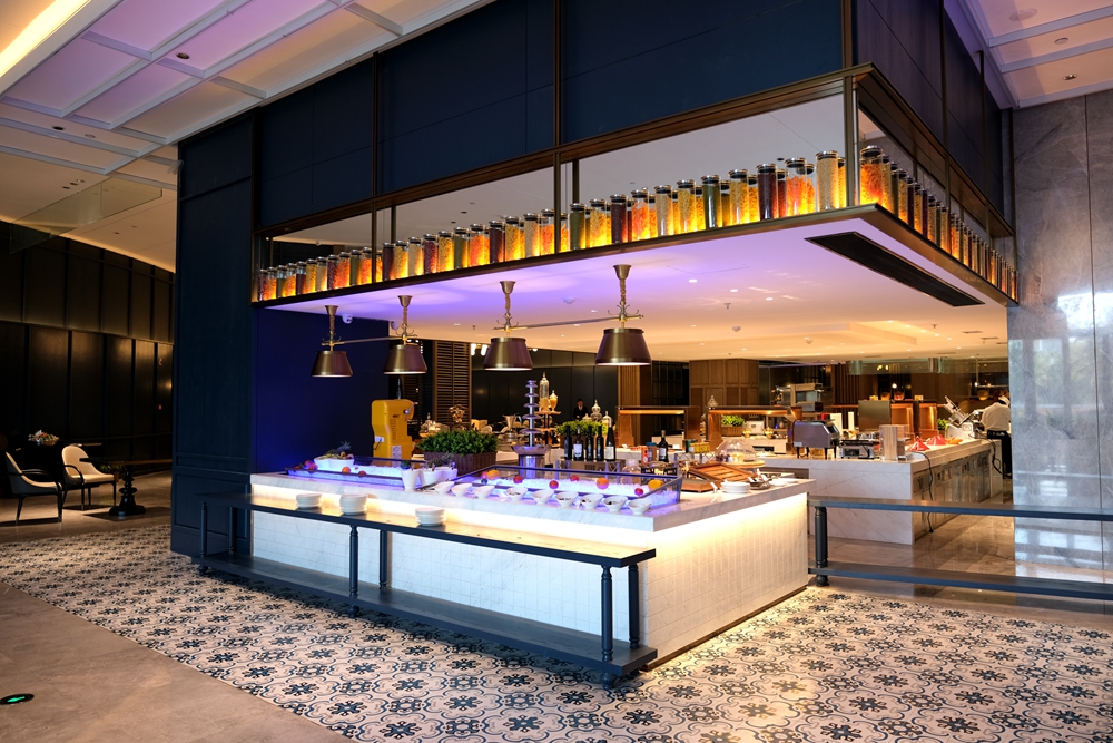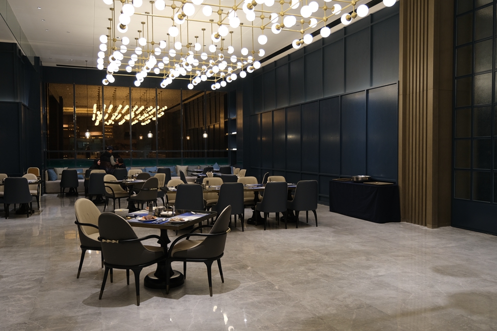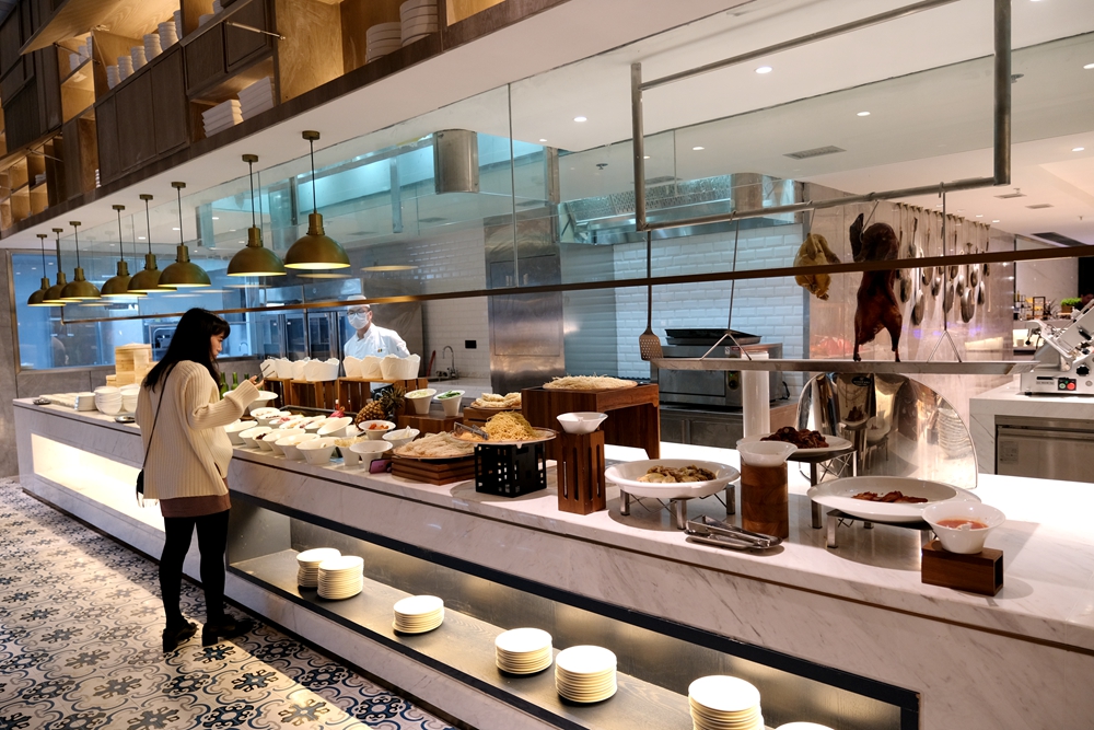 酒店新开张,目前自助餐每位需要188元,酒店为每个用餐者都准备了半只蒜香波士顿龙虾和自助海鲜火锅,轻轻松松就吃回本了。我是第一次品尝自助海鲜火锅,吃起来也很意思,因为想吃什么海鲜,自己去自助餐餐厅活水池的挑选。这活水池将鲍鱼、海虾、虾姑、海螺等海产品先清洗再放养,如此一来可以保证食材的鲜度。
