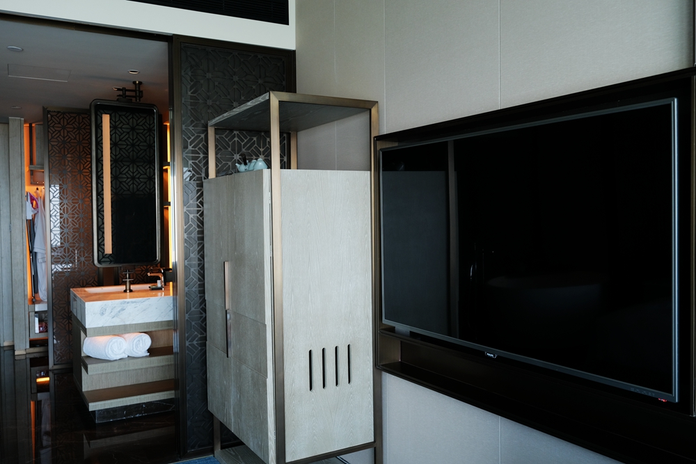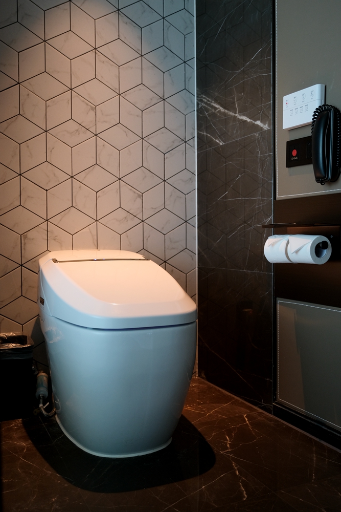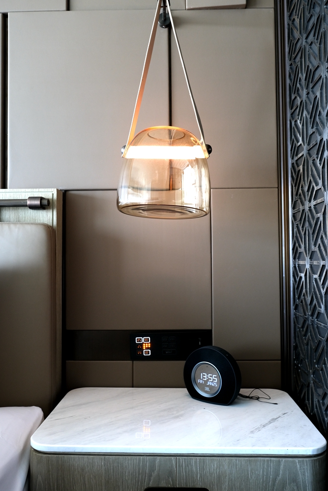 值得一提的是,房间里的配套设有有不少还是紧跟智能科技潮流的,比如飞利浦空气净化器,65英寸的超大智能电视、感应式掀盖的智能马桶、JBL时钟音箱、电动窗帘等,与时俱进这一点真的很加分。