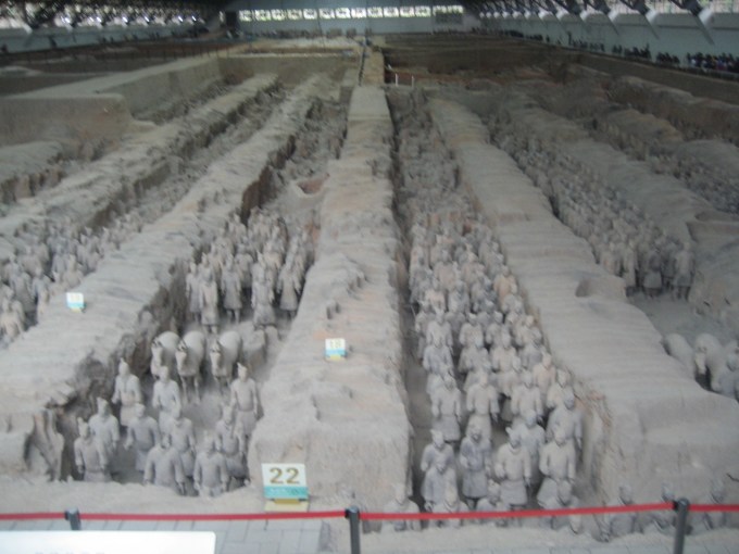 带着静仪看了看大雁塔广场,居然有音乐喷泉!在玄奘法师雕像前看到天上飞机划出白线交织成的网,琢磨着法师现在如果去取经应该不用悟空和八戒了吧,出电子客票就行了啊! 窃以为,作为纯种的中国人都应该去兵马俑和秦皇陵看看,在这种保守思想作祟下,怂恿了静仪一个人去了,我跑回旅馆睡觉去了,呵呵。她回来说兵马俑多开了一个坑。