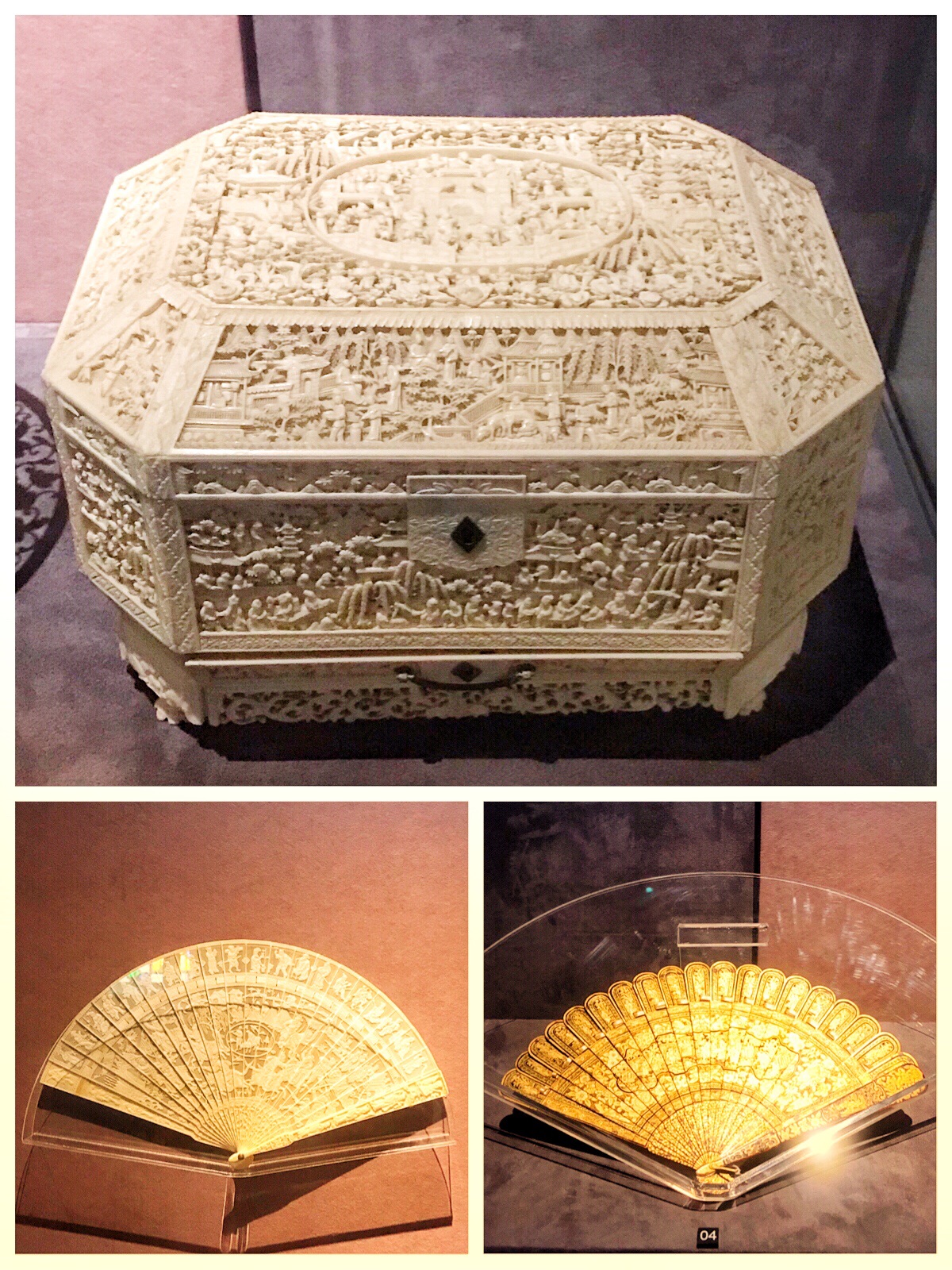 象牙工艺巧夺天工,上面的图里象牙的盒子是针线盒,好奢侈的感觉。