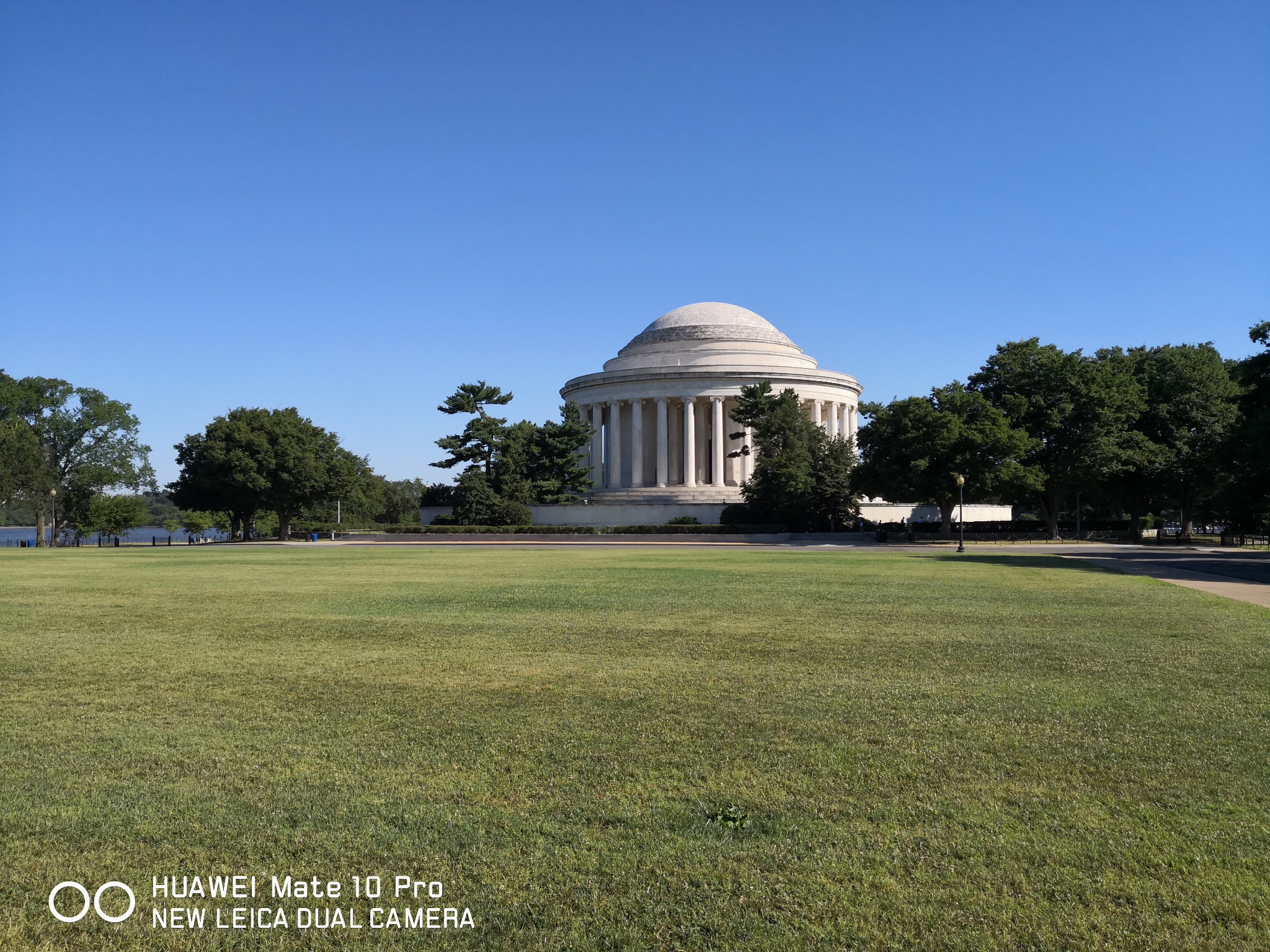 也是一早就从住地出发到哥伦比亚特区,打Uber到最近的杰弗逊纪念堂,杰弗逊纪念堂建在潮汐湖的一个角落,沿着纪念堂拾级而上,在朝霞的映衬下,透过纪念堂外围十分大气而又经典的廊柱,顺着潮汐湖方向,眺望远处的华盛顿纪念碑,近处水面上水鸟在觅食、嬉戏,天空中一群飞鸟掠空而过,这画面很美!再进入到纪念堂内部,的确很端庄典雅,这里把杰弗逊的治国理念展示得很清楚,我想可能也正是有了杰弗逊的杰出贡献,才奠定了两百年后美国强大的基础。