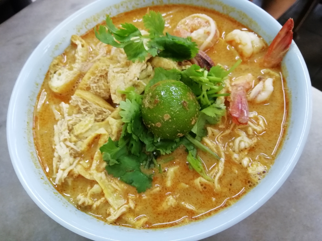 一觉到了中午十一点钟,两人收拾完毕,便下楼觅食,在楼下有名的怡丰茶室,人很多,点了它的招牌——叻沙面,再加牛杂面,金桔酸梅汁