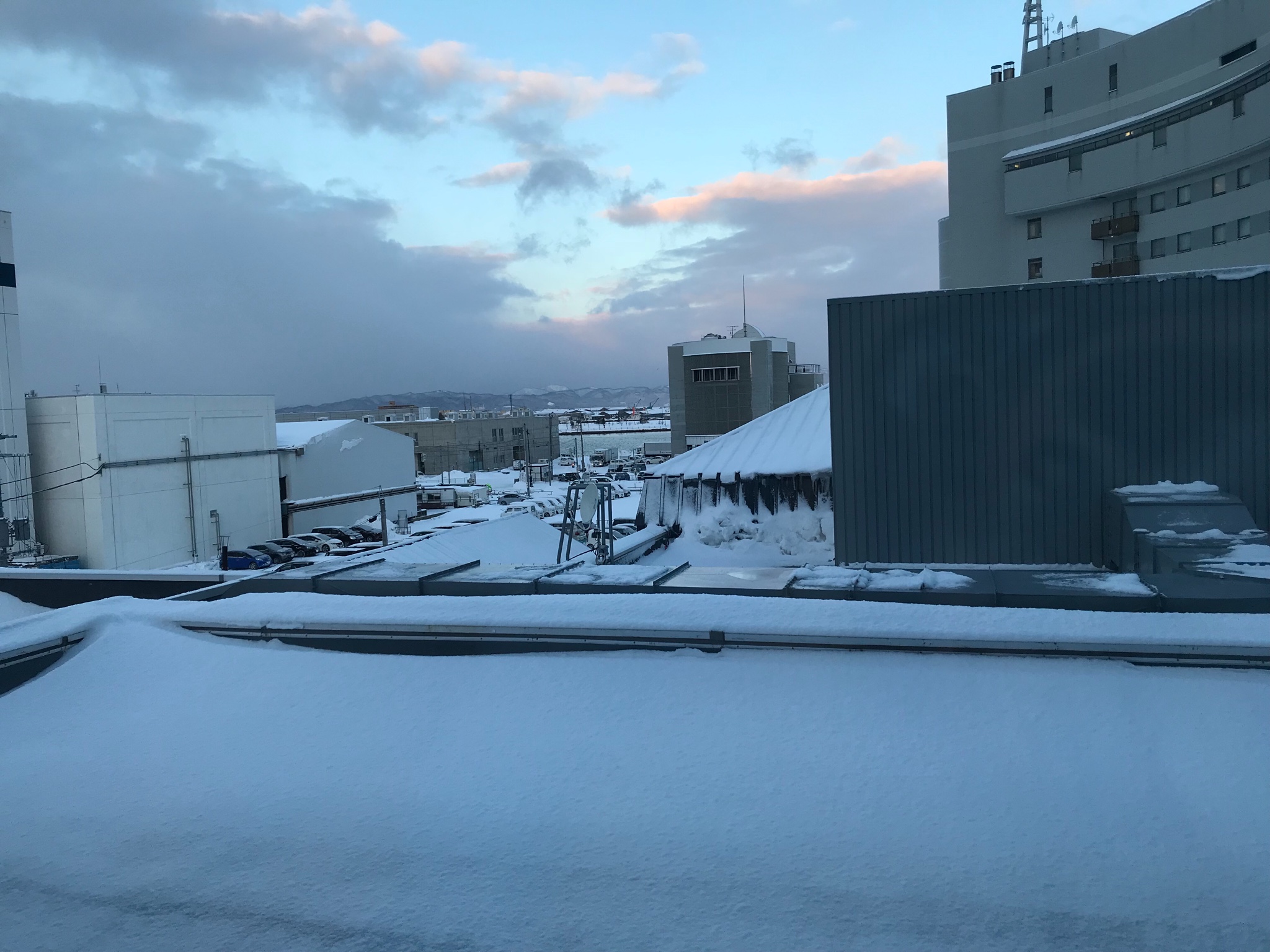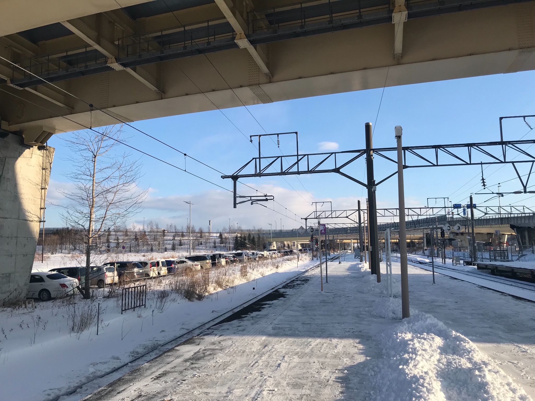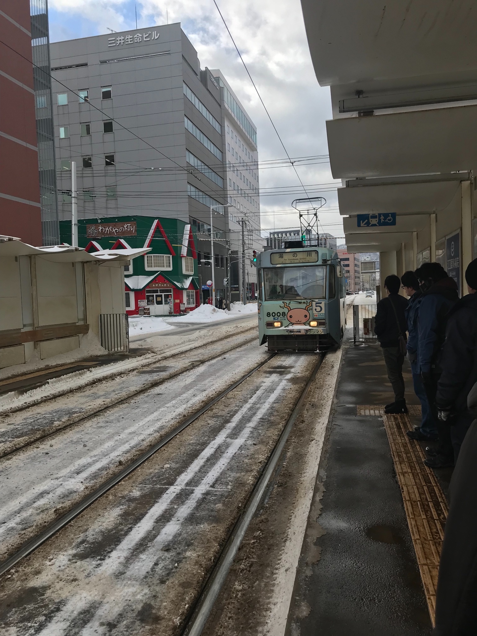 坐惯了我大中国的高铁再坐日本的火车真是受不了,实在是太慢了,还晃,速度基本和开车差不多。列车晚点8min,在站台玩会儿雪爽一爽。