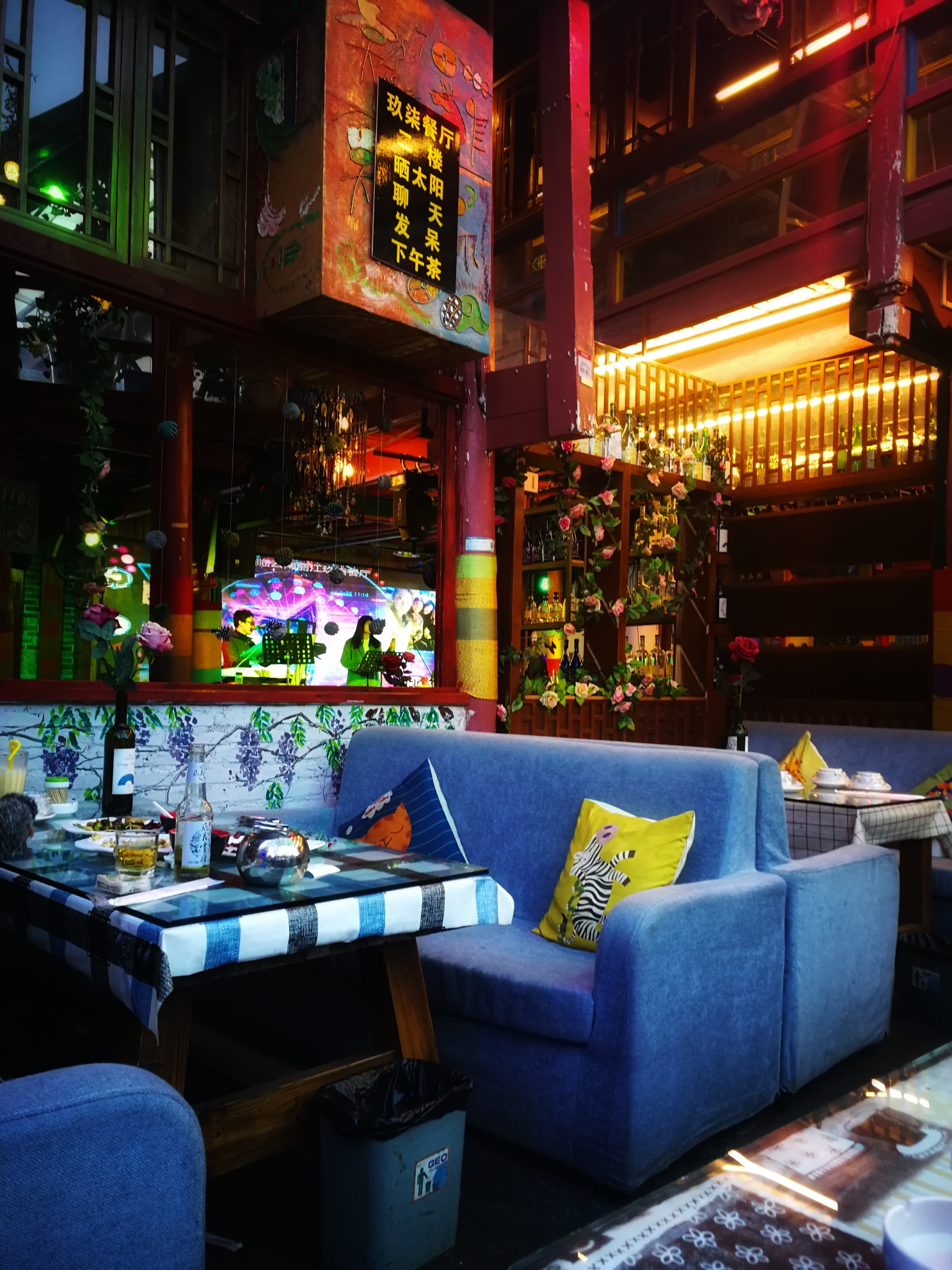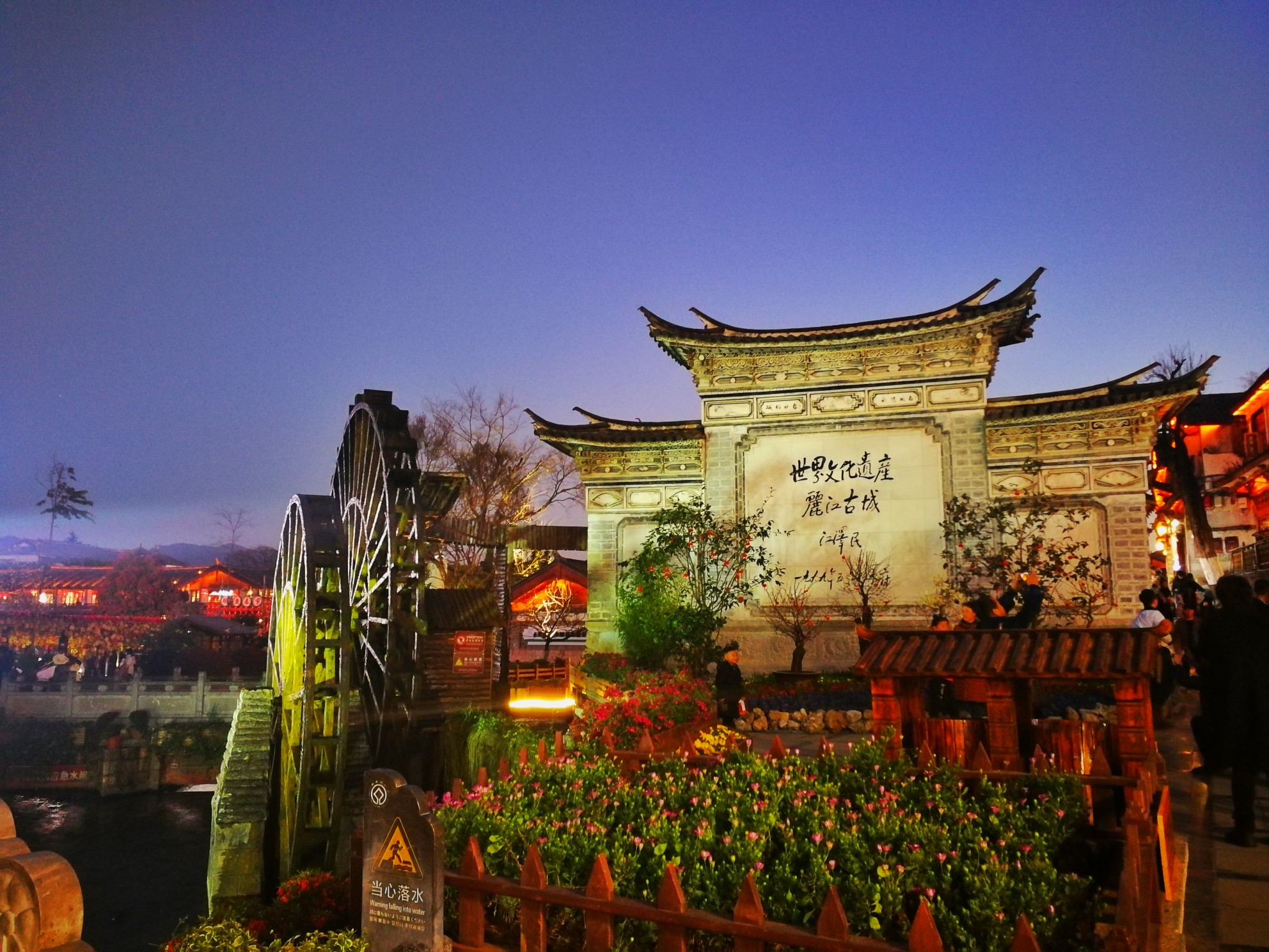 曾经也担心打不了车回古镇,但在蓝月谷的一平台,会有人举着7路车的牌子,其实就是私家车拼车,到丽江古城25元一个人,比较划算!当日傍晚五点多我们抵达古城,我并没有资格去评论大家口中糟点太多的古城,我只能算是一名匆匆的过客,很俗气拍两张照片证明我来过。每一个地方,铭记它美好的一面吧,毕竟我们心的容量不大,呵呵!随机找了个店吃个晚饭,听着并不喜欢的驻唱女歌手流于表面的表演。夜幕渐渐降临,此刻我却想驻步于此,去欣赏它的美,耐何时间太匆匆。将来,希望有机会,能弥补这一遗憾。